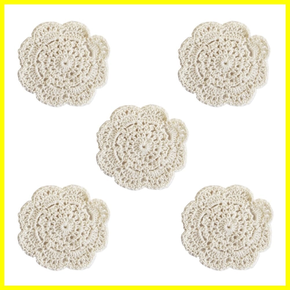 MinniLove コットンかぎ針手編みコースター 欧風コースター 断熱パット ランチョンマット 鍋敷き かぎ針手編み 吸水 洗濯可能 コットン糸 ベージュ (B-5個入)