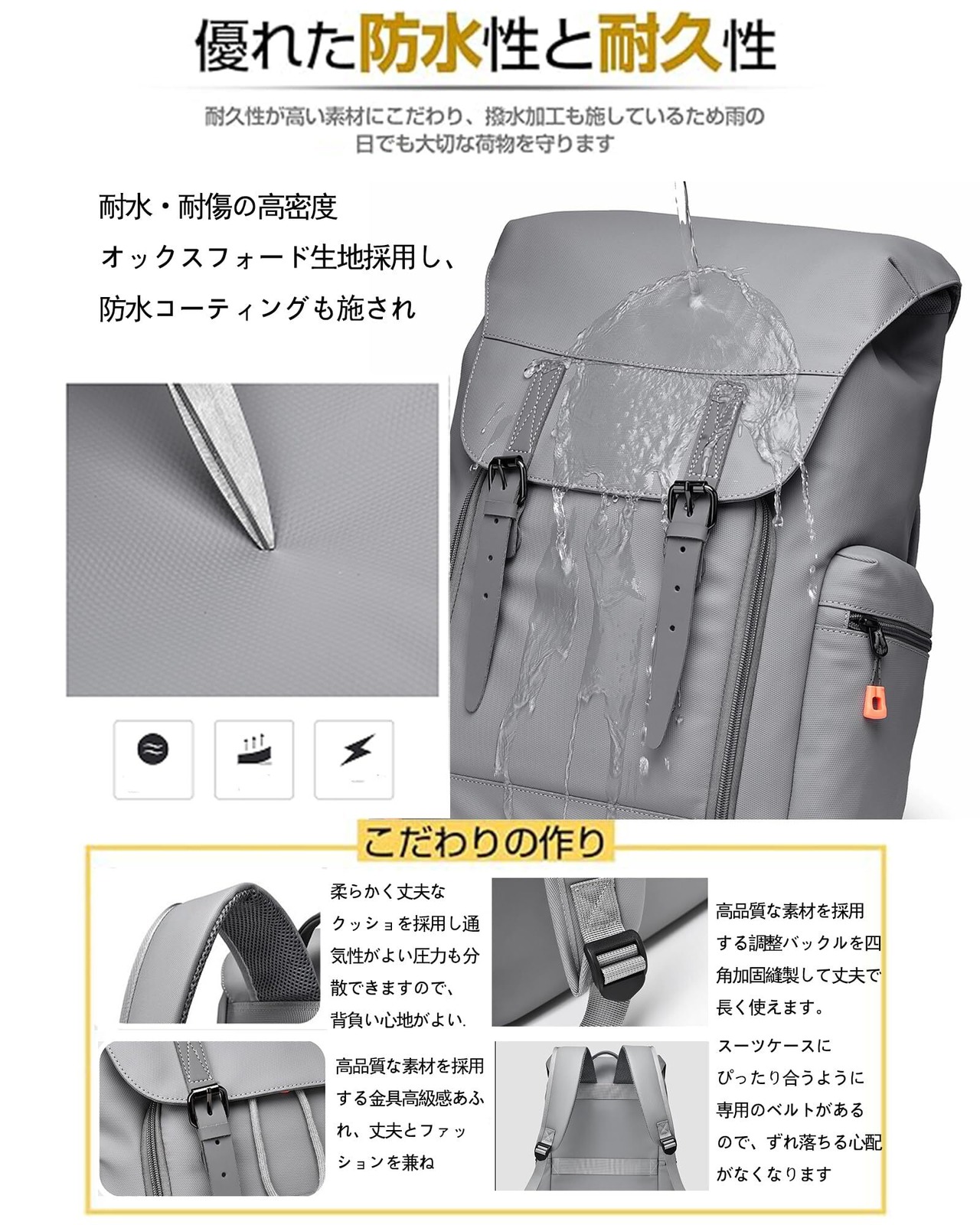 【メイン素材】900Dオックスフォード生地で耐擦り傷性に優れており、長期間使用しても傷がつきにくいです。