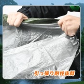【高品質PE素材】防水シートは軽くて丈夫なPE素材を使用しています。 雨など様々な悪天候から荷物を守ってくれます。耐折性、耐寒性、耐老化性、軽量、柔らかさという利点があります。