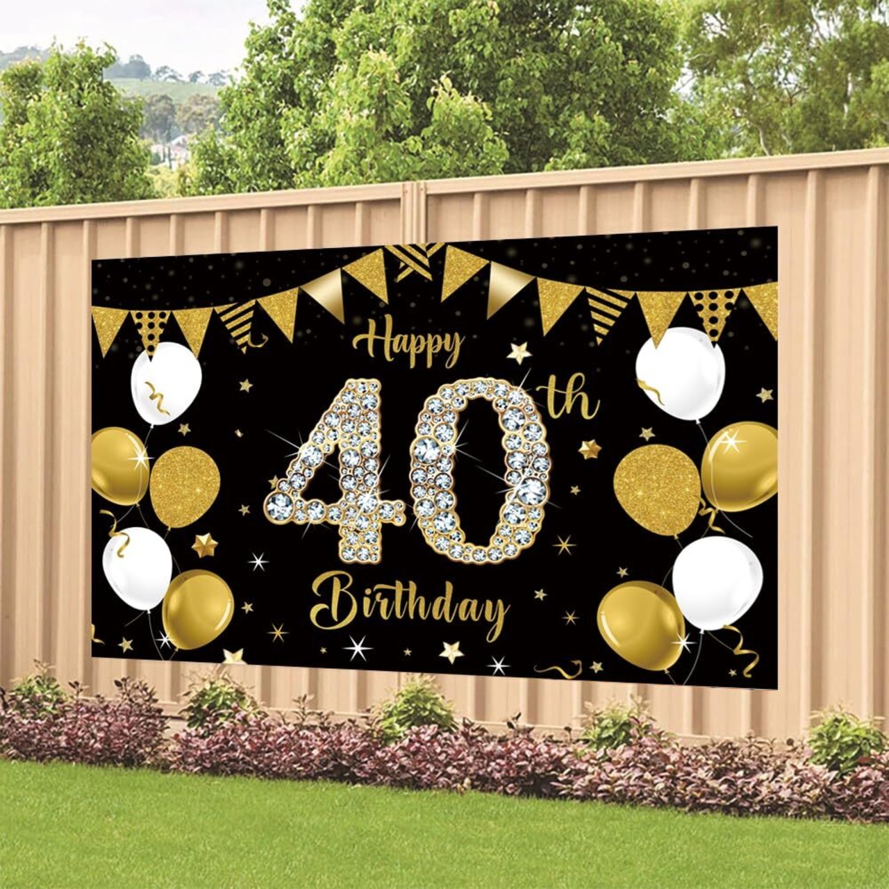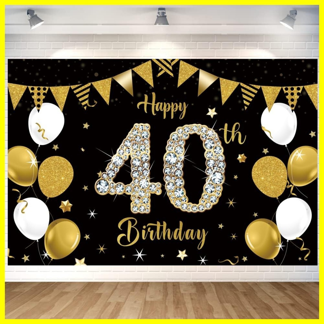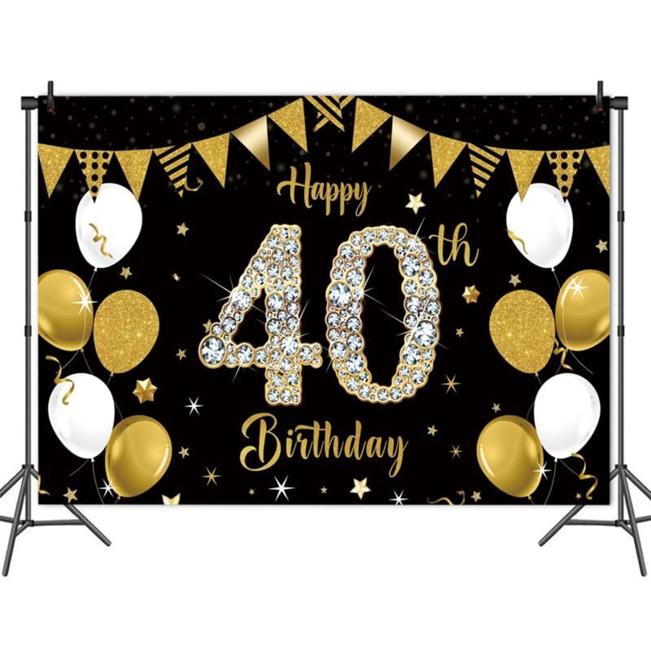 40歳 ブラックゴールド バースデー タペストリー 誕生日 飾り付け タペストリー おしゃれ 不惑 誕生日 壁掛け 写真背景 Happy Birthday パーティー フォトポスター おうちスタジオ 180x120cm