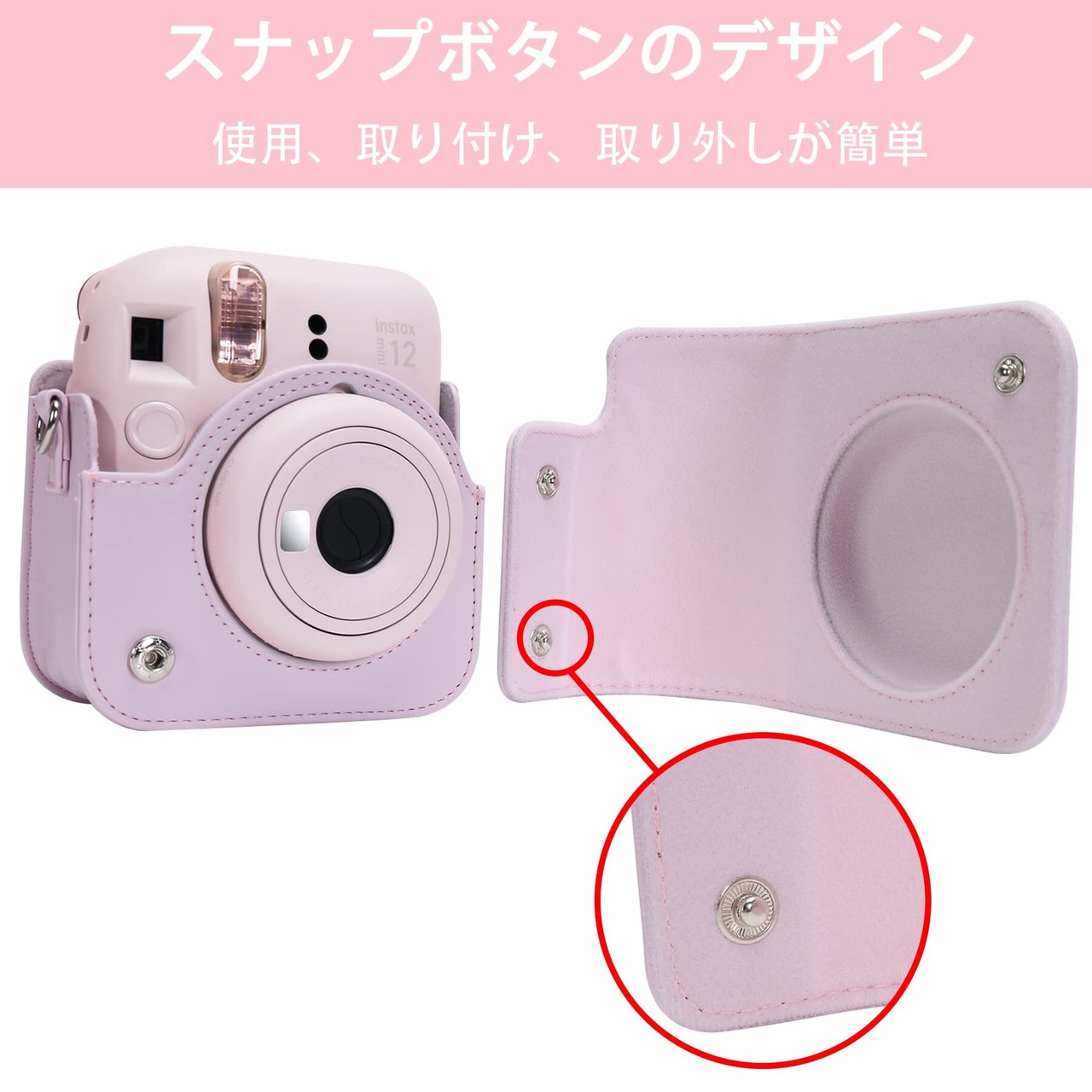 【携帯に便利なデザイン】ケースはボタン付きのデザインで、fujifilm instax 12の取り出しや収納に便利です。調節可能なショルダーストラップを装備し、旅行の際にチェキ instax mini 12を携帯するのに便利です。