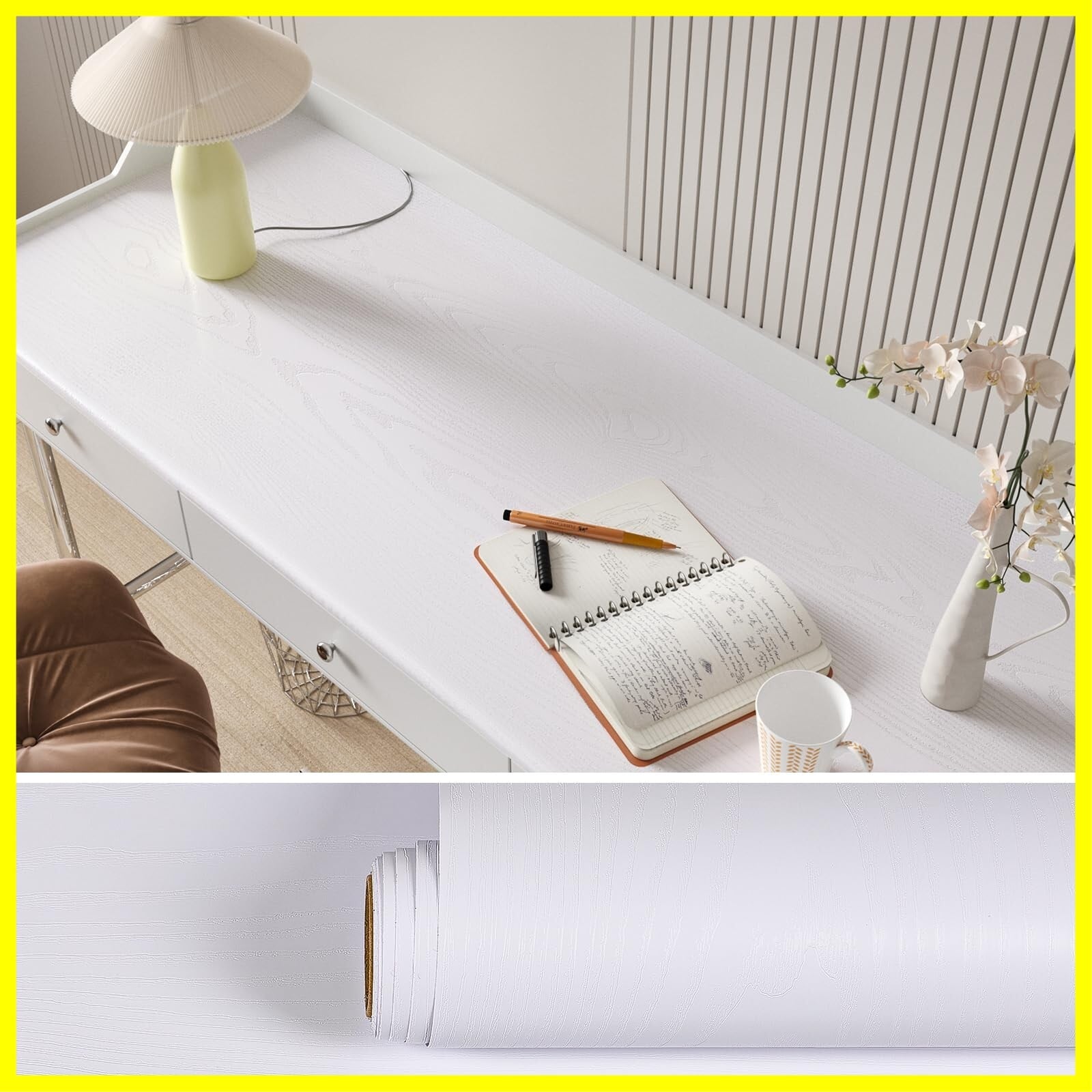 VEELIKE 40cmx3m 壁紙シール 木目 ウォールステッカー 無地 白 リメイクシート 防水 耐熱 防汚 防油 インテリアシート 剥がせる壁紙 接着剤付き カッティングシール キッチン シート 賃貸OK 模様替え 家具 台所 浴室 補修シール シート DIY 木目調 壁紙