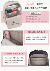 大容量ながら1泊2泊分の荷物が収納可能なバックパック。 A4雑誌や書類、タブレットやノートPC (14inch以内) はもちろん、ドリンクボトルやランチボックス、冷房対策の上着やひざ掛けなどのかさ張る荷物も全て収納可能。 合皮素材の上品なデザインと防水性が特長で、旅行や出張にも最適です。