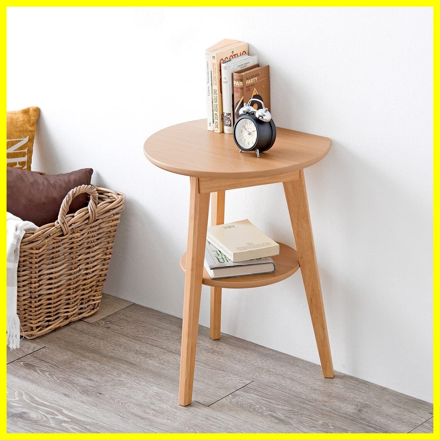 萩原(Hagihara) サイドテーブル 丸型 机 ナイトテーブル 【壁付けできる】 丸テーブル 天然木 ナチュラル 1台 VT-7972NA