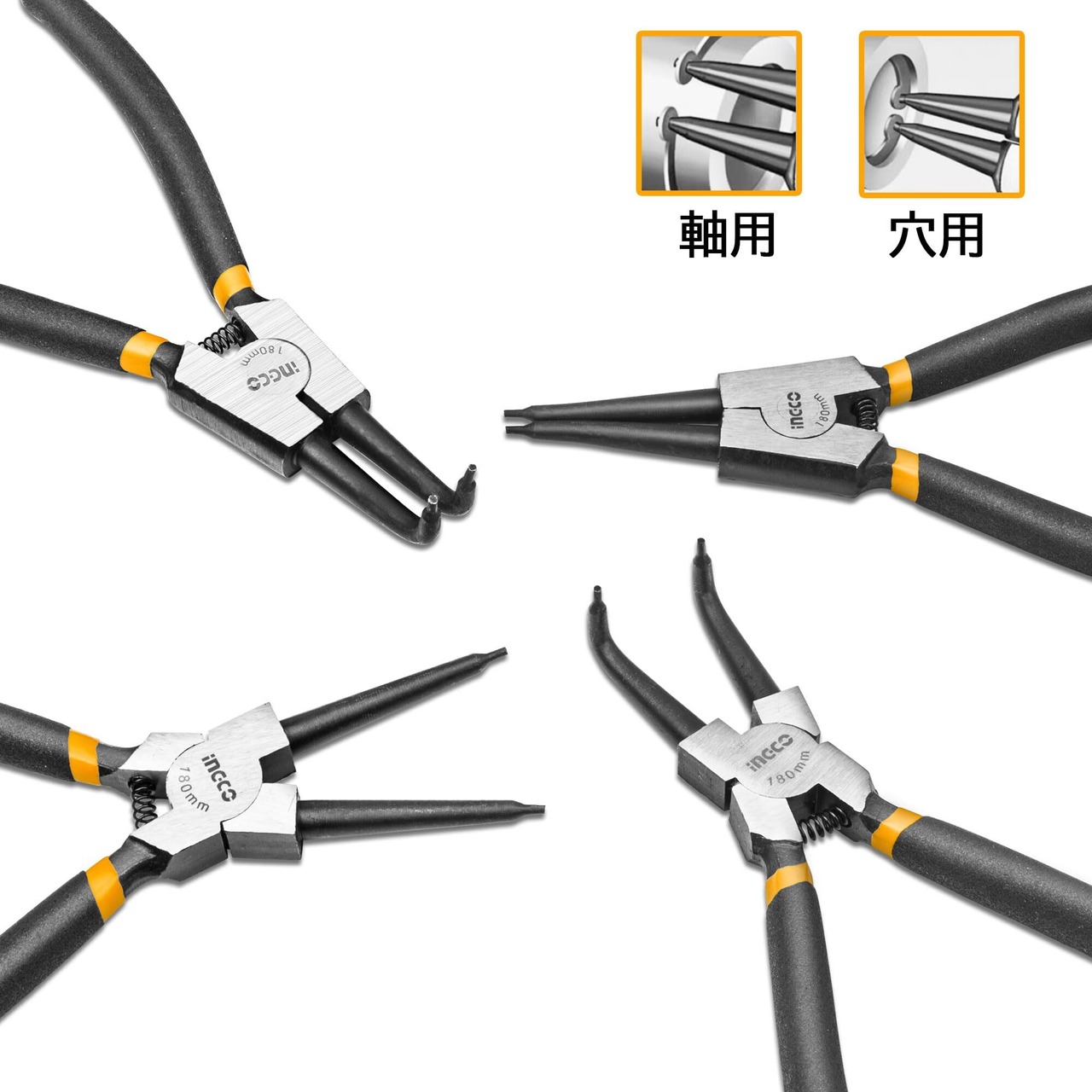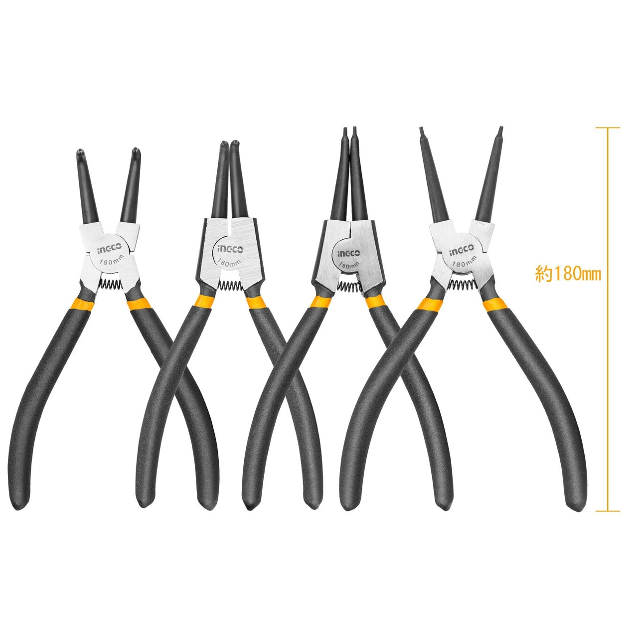 INGCO スナップリングプライヤー 4本組 先端直径φ1.8mm 全長180mm HCCPS01180