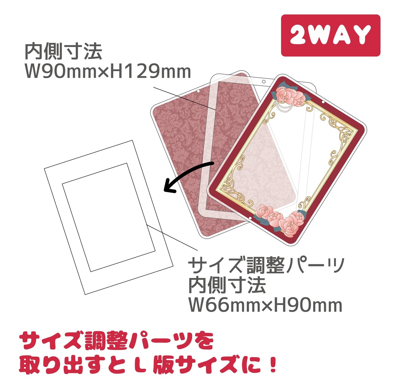 サイズ調節パーツを入れるとトレカサイズ、パーツを外すとL版サイズになる2WAY仕様