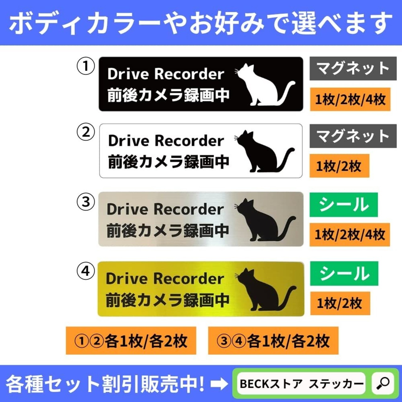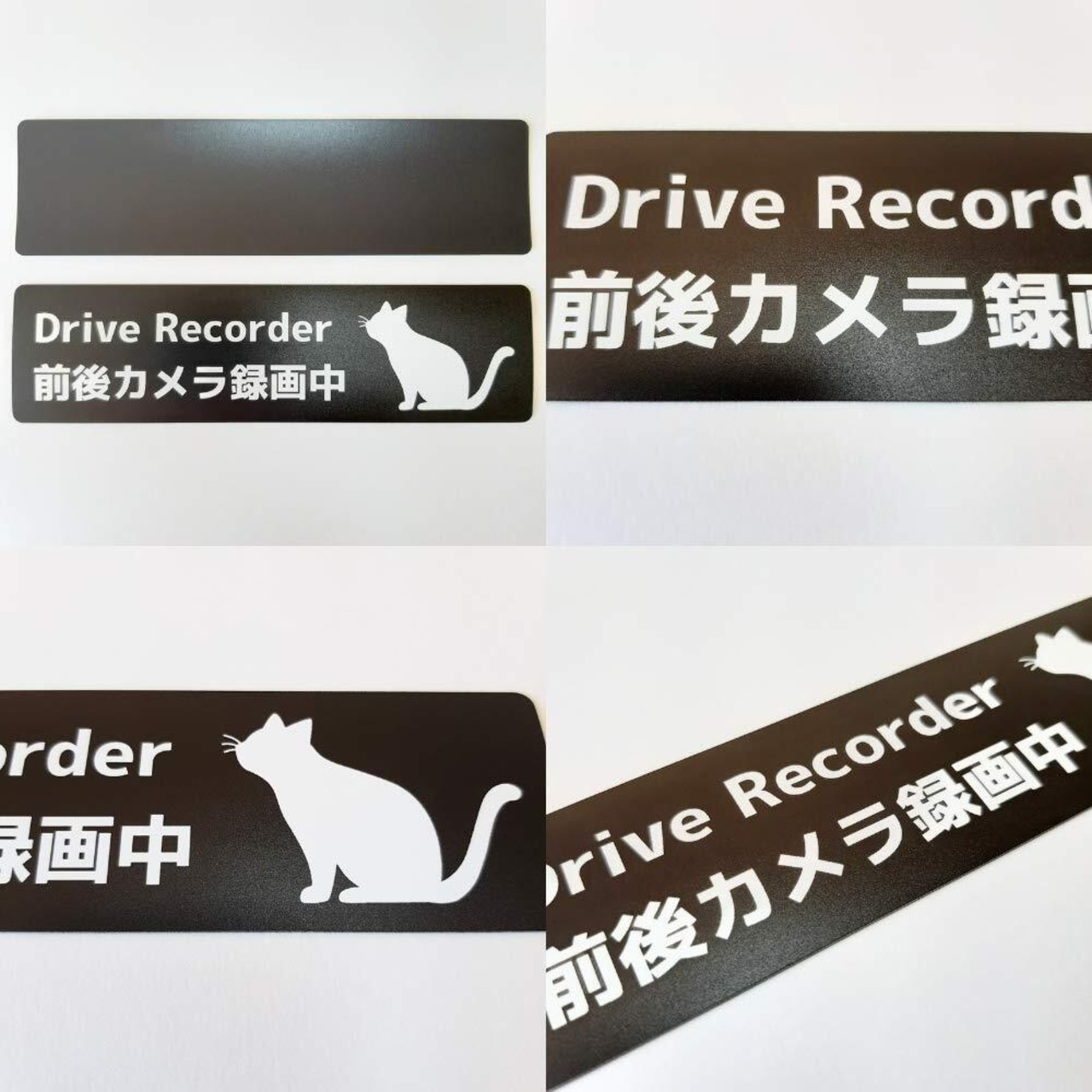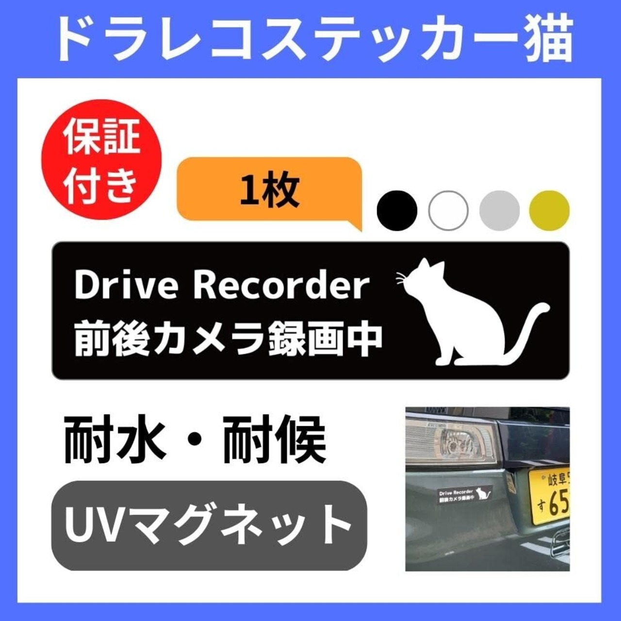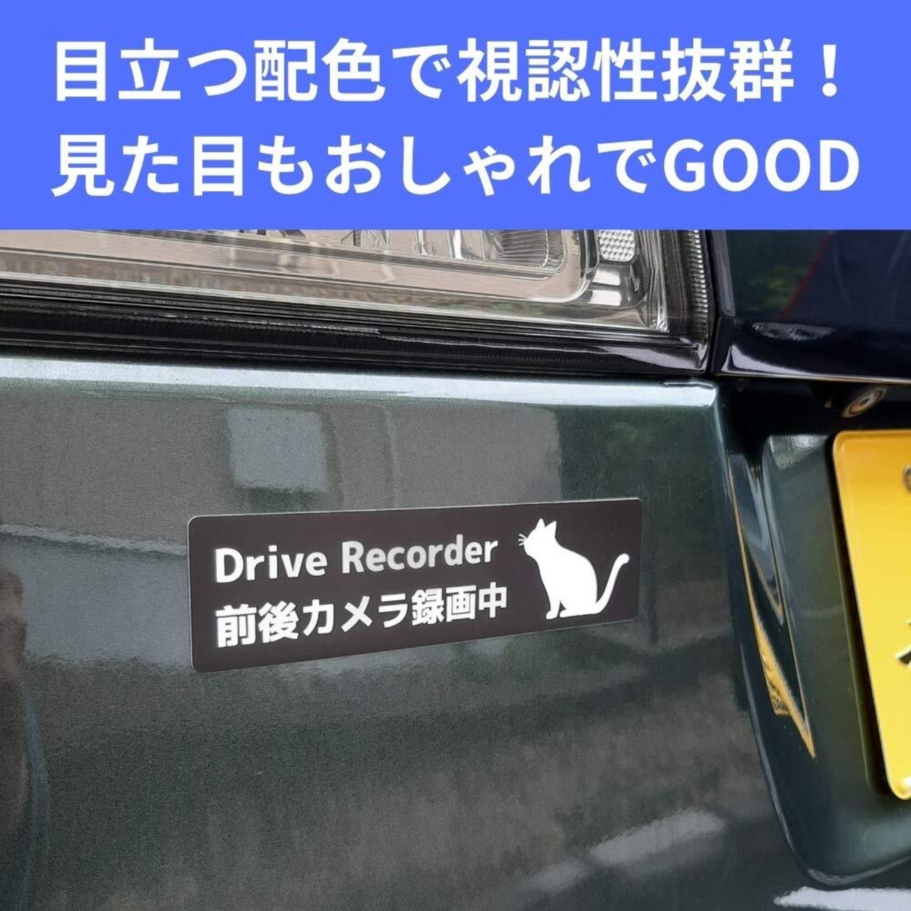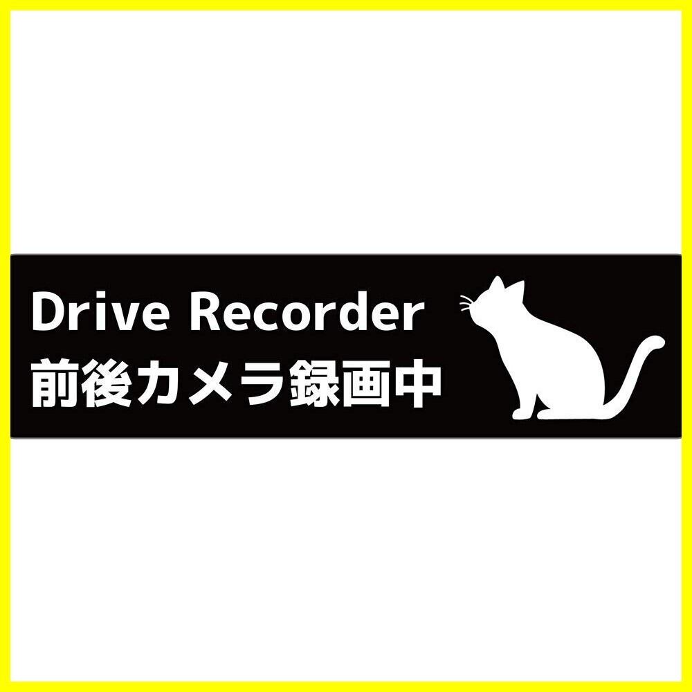 ドラレコステッカー 猫 ねこ マグネット Drive recorder 前後カメラ録画中 (ブラック, 15×4cm)