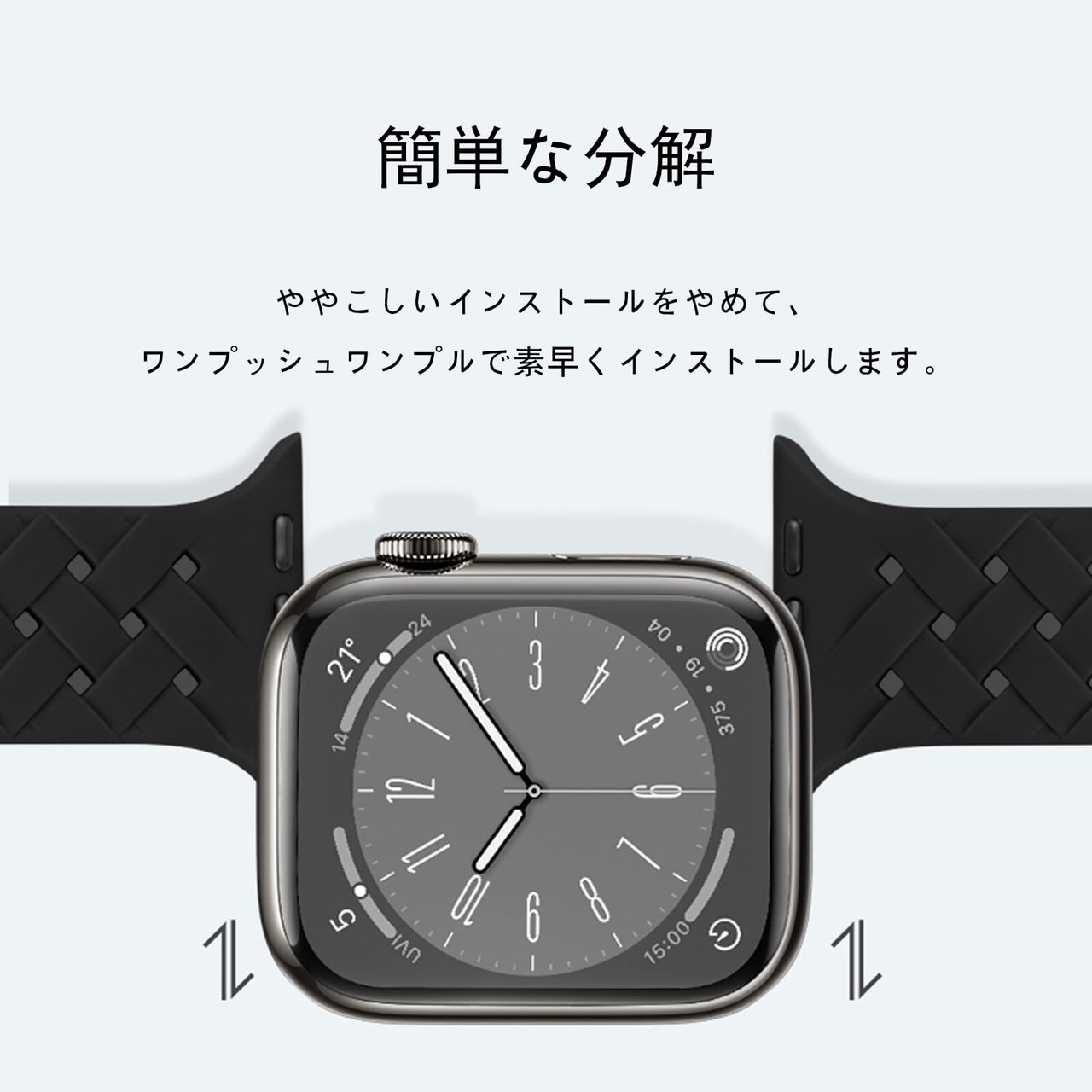 【対応機種】iWatch 49mm/46mm/45mm/44mm/42mm対応。バンドの表面に数個の調整穴があり、長さが自由に調整可能です。手首サイズは170-220mmの方に適します。購入前に、お手首の周りを測定してください。(Watch本体は付属しておりません、バンドのみです)