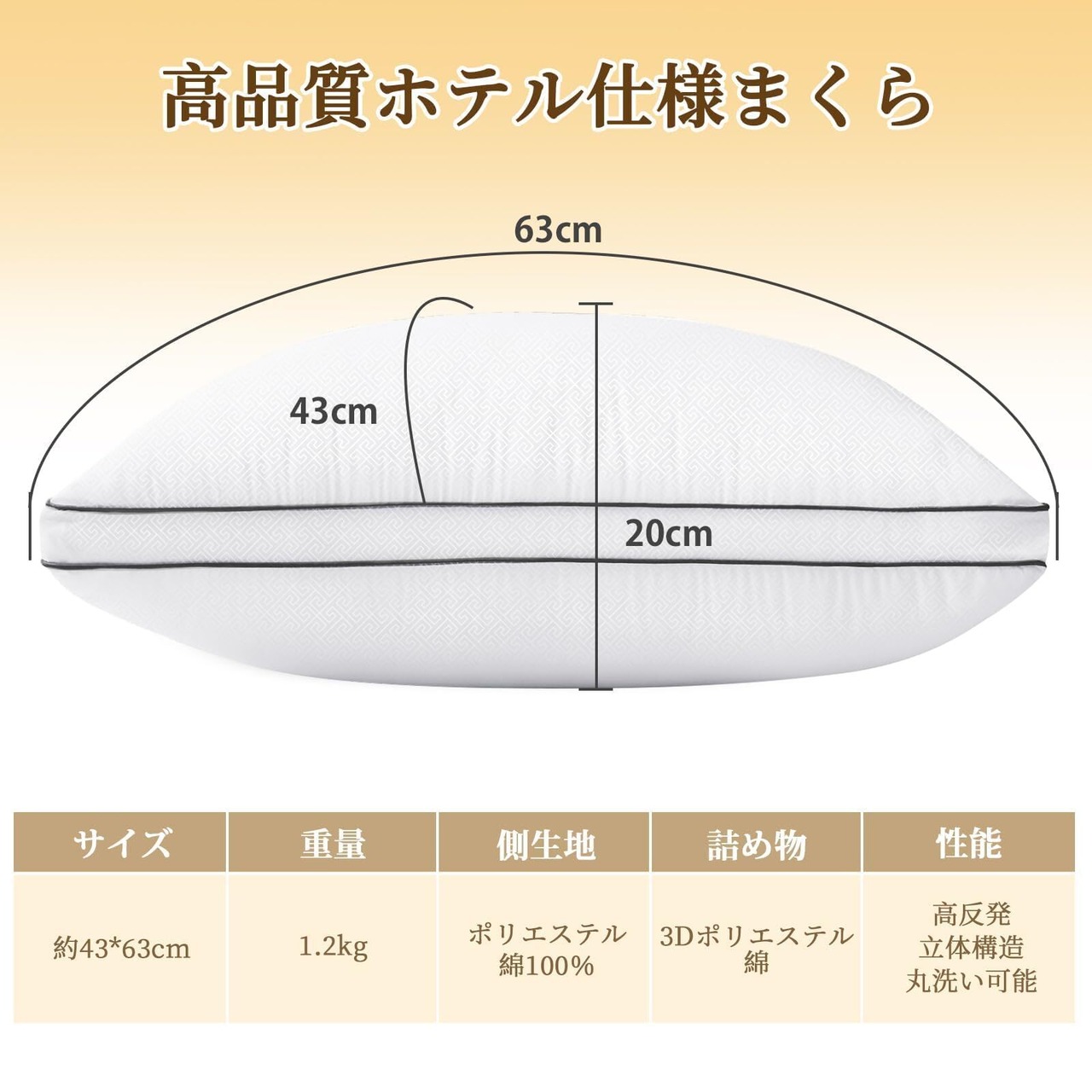 HEVUMYI 枕 まくら 首が痛くならない安眠枕 高反発枕 高級ホテル仕様 横向き対応 肩こり解消 丸洗い可能 立体構造 通気性よい 仰向き うつ伏せ寝 柔らかい 長さ63cm*幅43cm*高さ20cm (ホワイト)