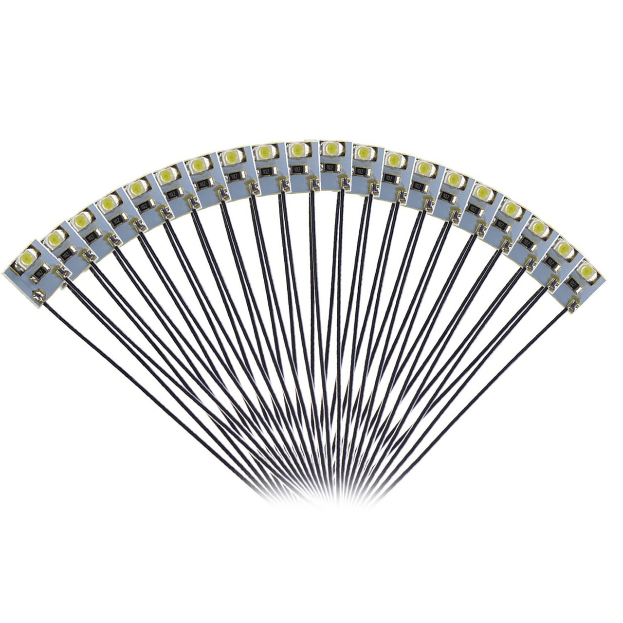 配線付き SMD 3528 チップLED 白 抵抗付属 20本入り 電車模型 鉄道模型 建物模型 模型電飾 ジオラマ