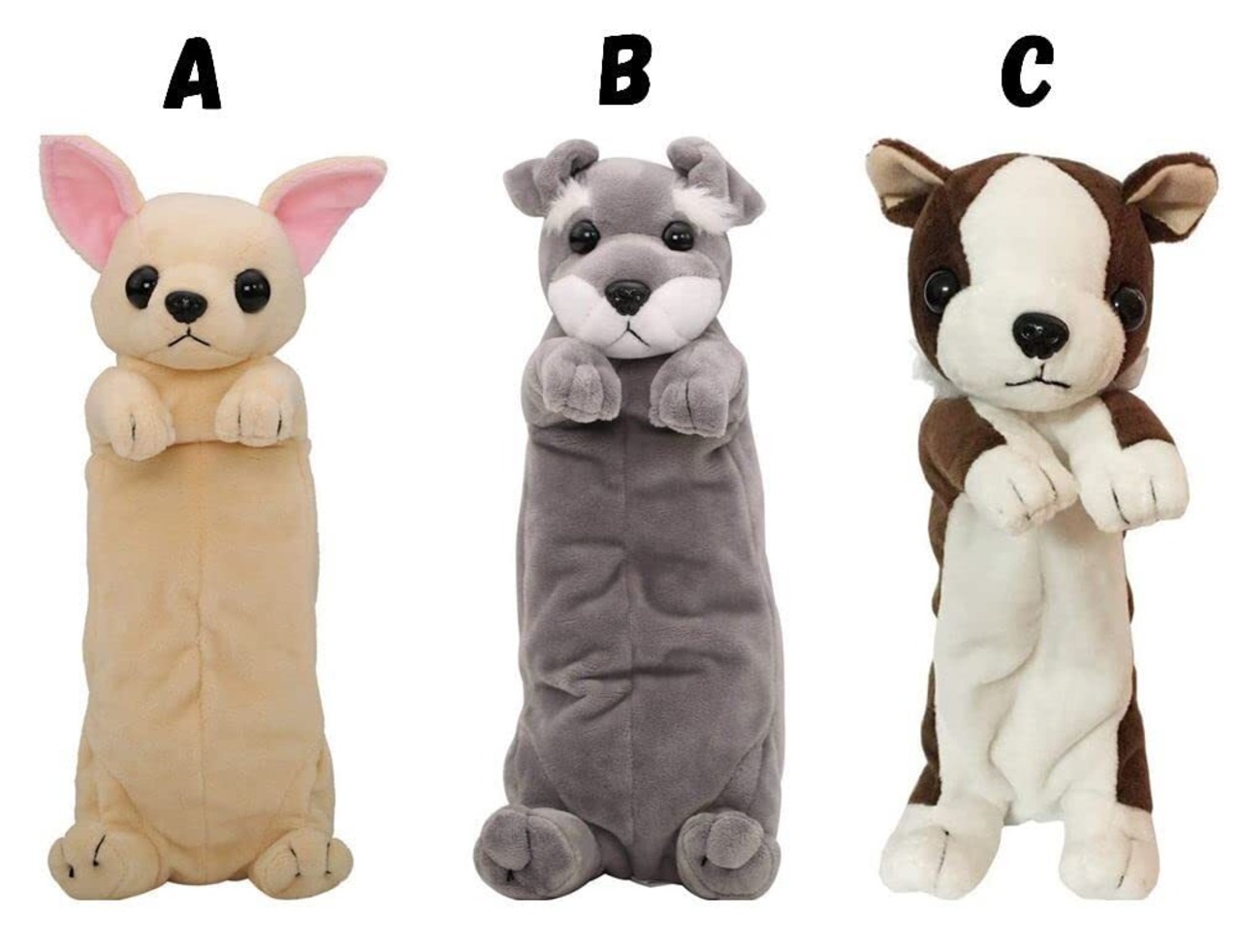 かわいいわんちゃんのぬいぐるみ型ペンケースです。 背中はファスナーなので開け閉めは簡単!文房具の他にもコスメや雑貨などのちょっとした小物入れ・ポーチとしても使えます。肌触りも良く、ぬいぐるみとしてもキュート!フック付きなのでバッグなどに取りつけOK!ワンポイントのマスコットとしてもかわいくてオススメです!