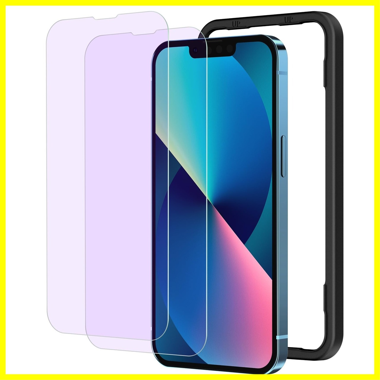NIMASO ブルーライトカット フィルム iPhone 16e /iPhone 14 /iPhone 13 Pro/iPhone 13 用 ガラスフィルム アイフォン 16e / 14 / 13 / 13プロ 対応 保護フィルム ガイド枠付き 2枚セット NSP21H307