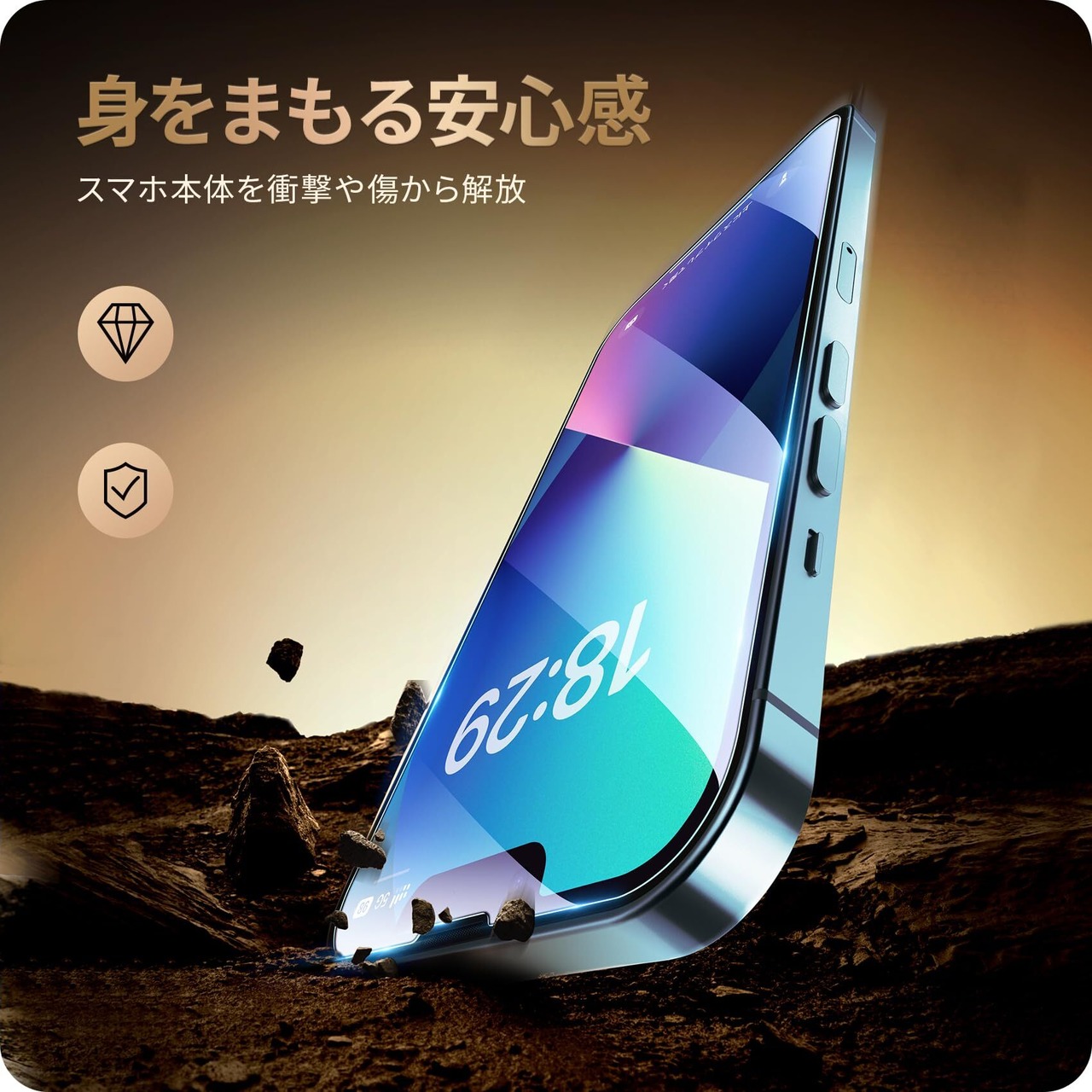 【高品質日本製素材製】日本製9H硬度ガラスを採用し、ハードコーティング技術により外部からの衝撃を吸収し、画面へのダメージを可能な限り抑えます。飛散防止加工により万一割れてもガラス破片が飛び散りづらくくなります。