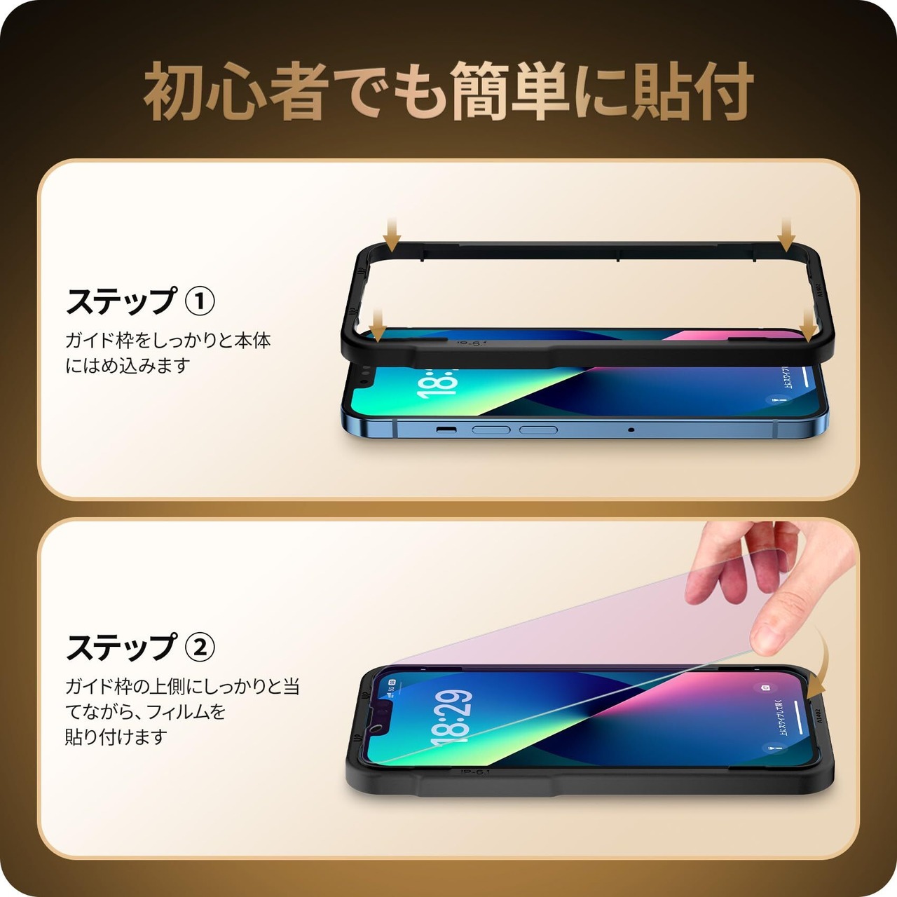 【貼付け簡単】専用の貼り付けガイド枠が同梱されています。ガイド枠を利用することで、本体とフィルムがズレることなく、だれでも簡単にフィルムを貼ることが可能です。また、フィルムのシリコン自己吸着層により、位置を合わせて上から軽く置くだけで気泡が入ることなく簡単に装着できます。