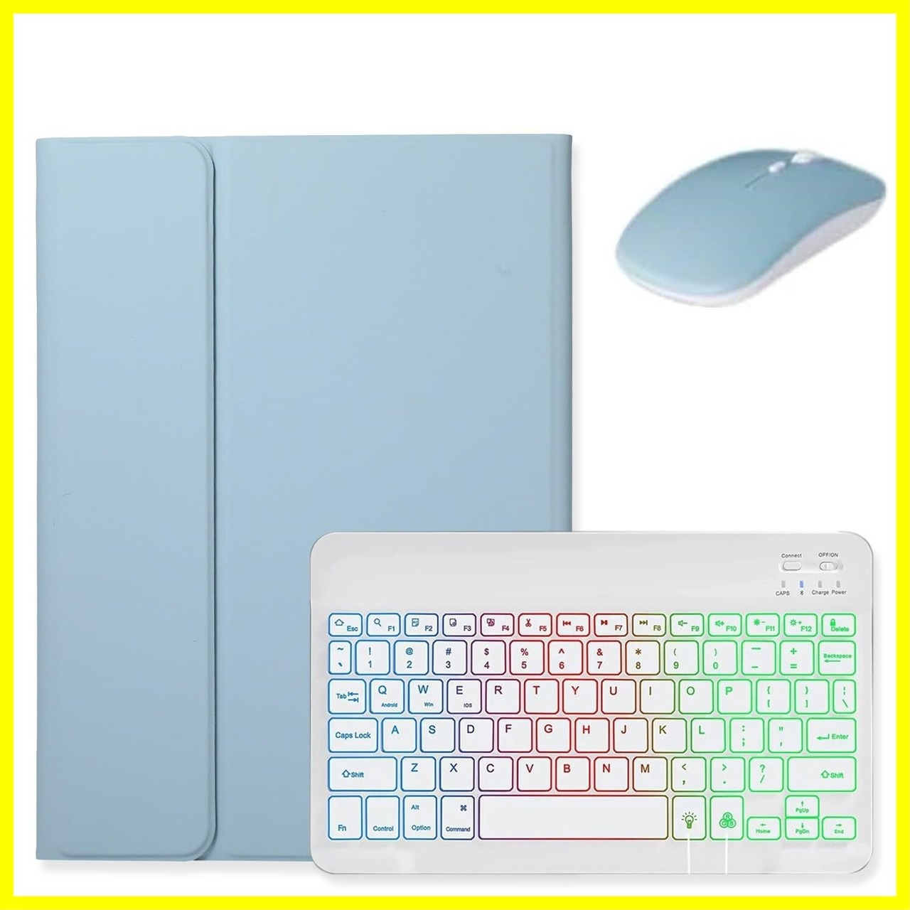 マウス付き Galaxy Tab S10 FE / S9 FE 10.9インチ キーボード ケース RGBバックライト付き かわいい Galaxy Tab S9/S8/S7 11インチ キーボード カバー マグネット 分離式 女性 レディース,霧ブルー+白