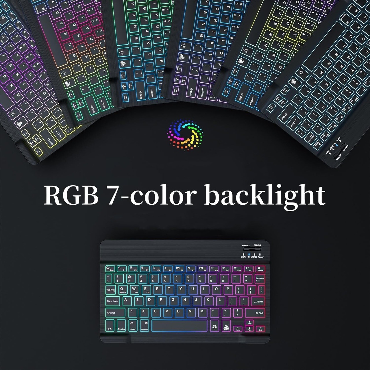 バックライトキーボード: 7色RGBバックライト付きGalaxy Tab S10 FE 10.9インチ/Galaxy Tab S9 FE 10.9インチ / S9 11インチ / S8 11インチ / S7 11インチ対応キーボード 、暗いところやよるでも気持ちよく使用できます、綺麗なバックライトでテンションも上がります。