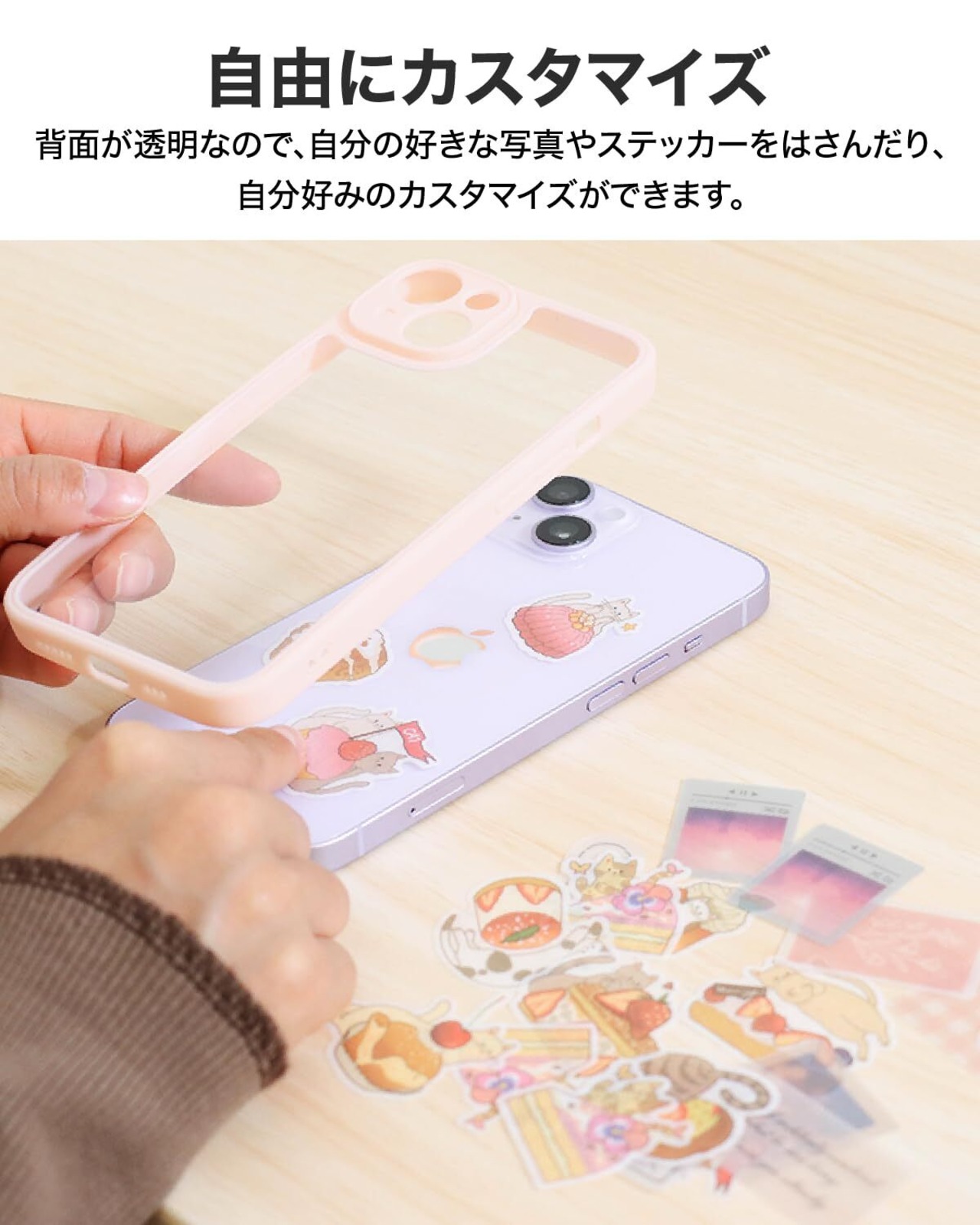【ストラップホール付き】:ストラップ穴があるので、ストラップやチャームなどを装着できます。【ボタン操作も快適】:使用頻度が高いサイドボタンや音量ボタンがストレスなく使用できます。【カスタマイズ】:背面が透明なので、写真やステッカーをはさむことができ、自分好みにカスタマイズができます。