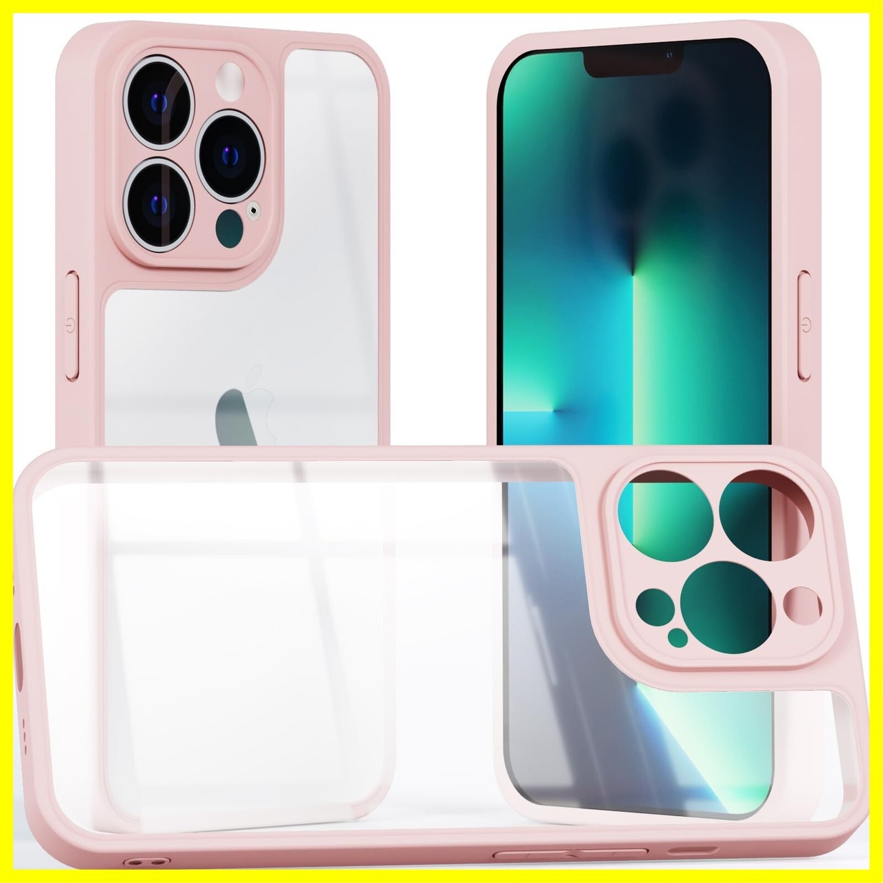 ベルモンド iPhone 13 Pro 用 ケース | 背面クリア 透明 タイプ | 薄型 軽量 TPU 耐衝撃 ストラップホール付き 可愛い くすみ カラー アイフォン 13 プロ B0760#6 ミルキーピンク