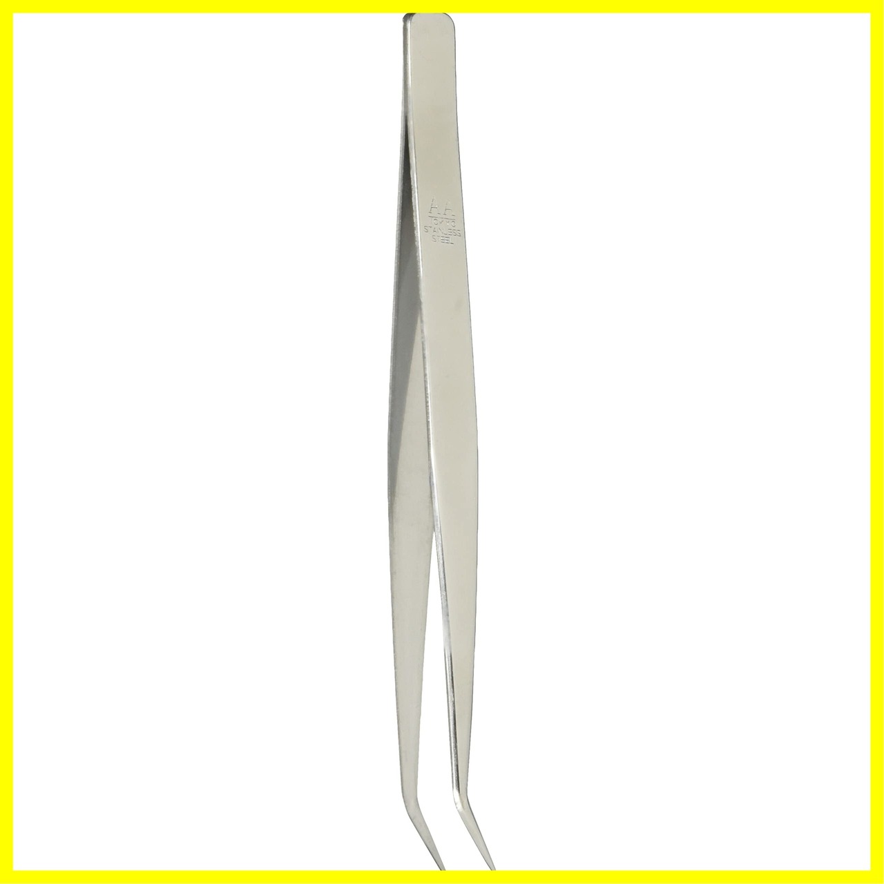 細かいものをピックアップする作業などに適した先が尖ったのピンセットです。先端が曲がっているので、平面におかれたものを拾いやすい形状になっています。