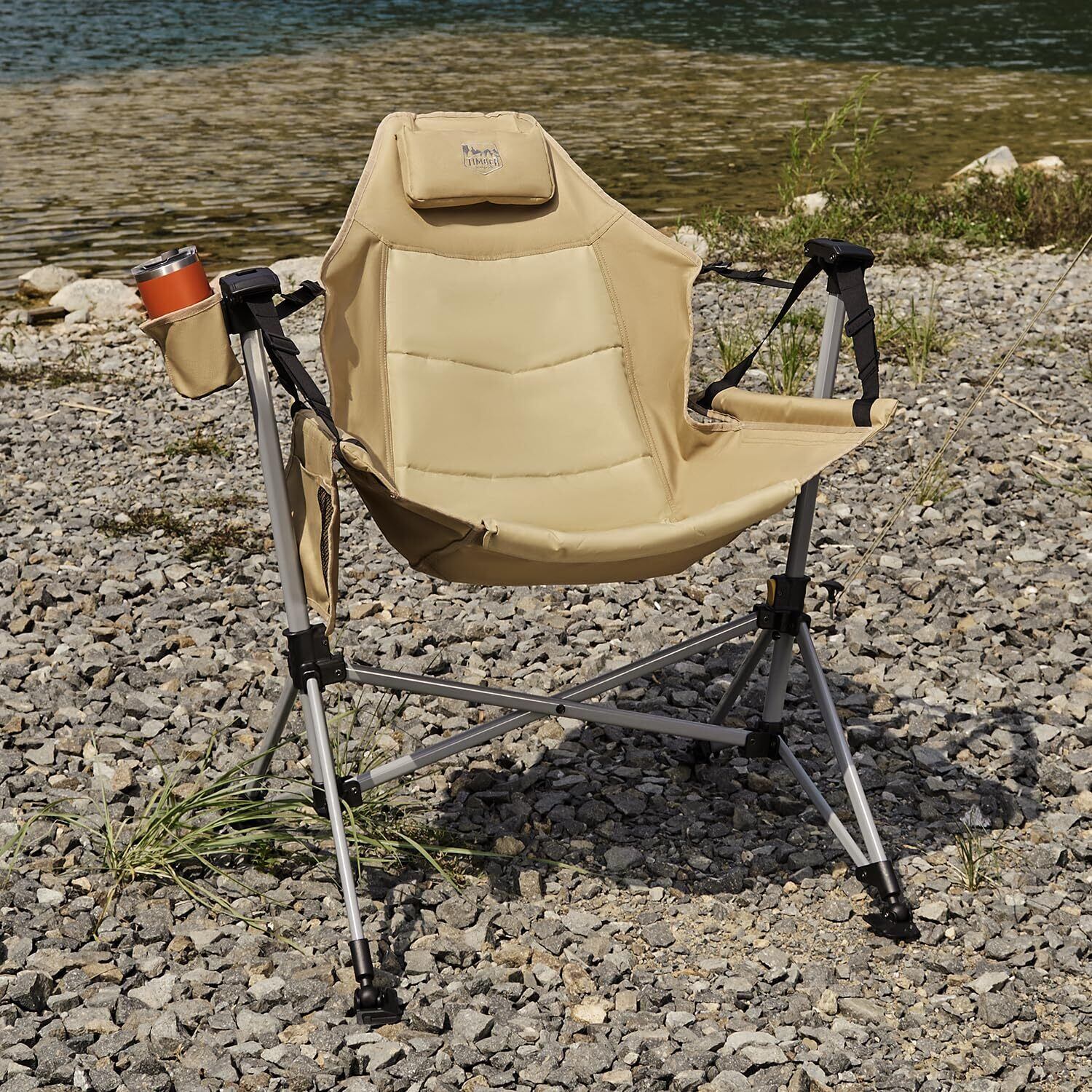 TIMBER RIDGE ハンモックチェア アウトドア チェア リクライニング 耐荷重180kg オートロック機能 ゆらゆら 自立式 折りたたみ ロッキングチェア キャンプ 屋外 室内 バーベキュー
