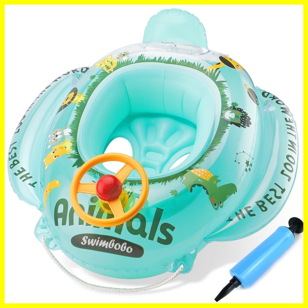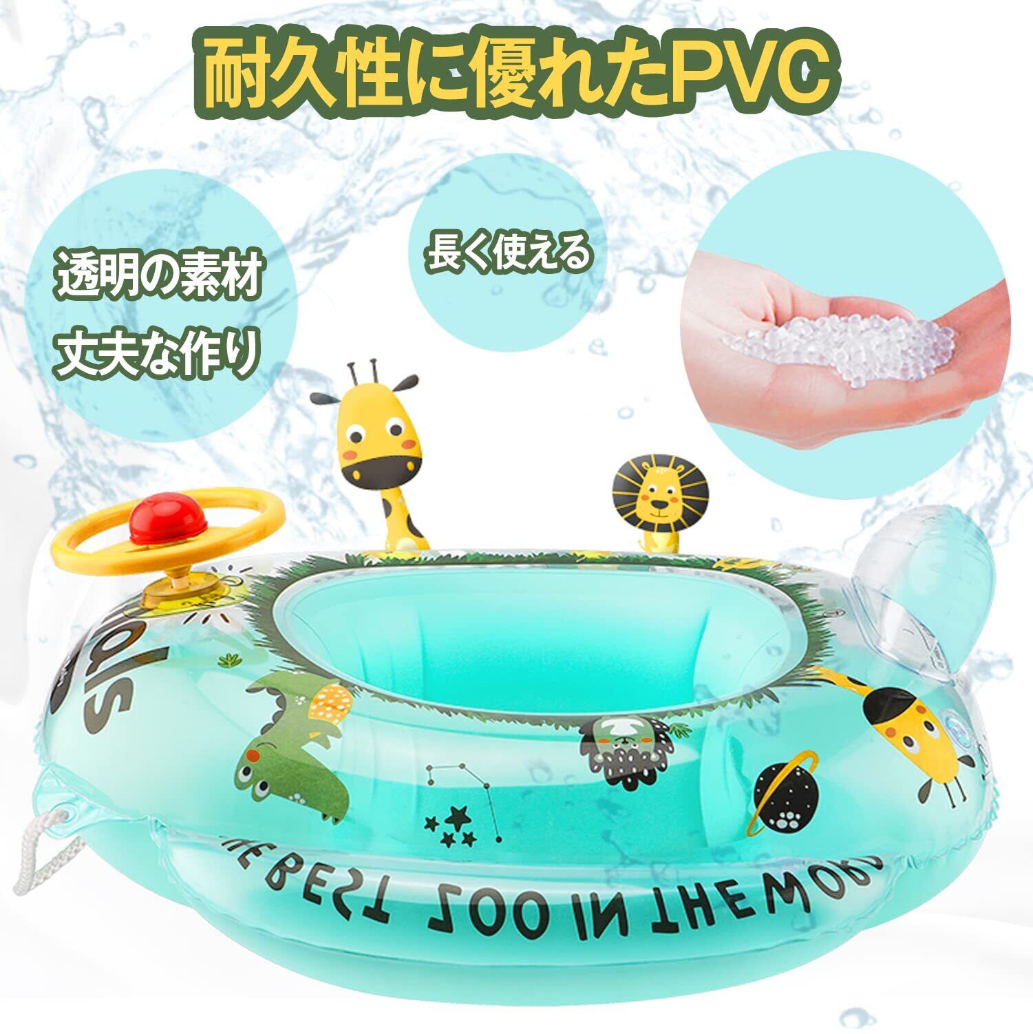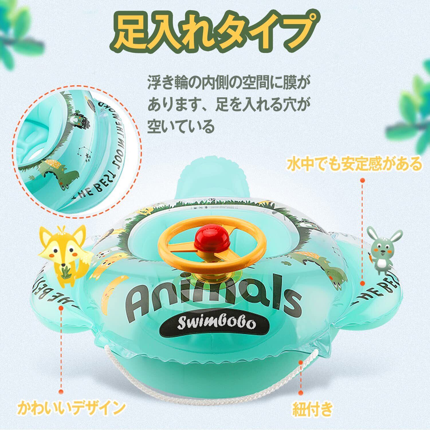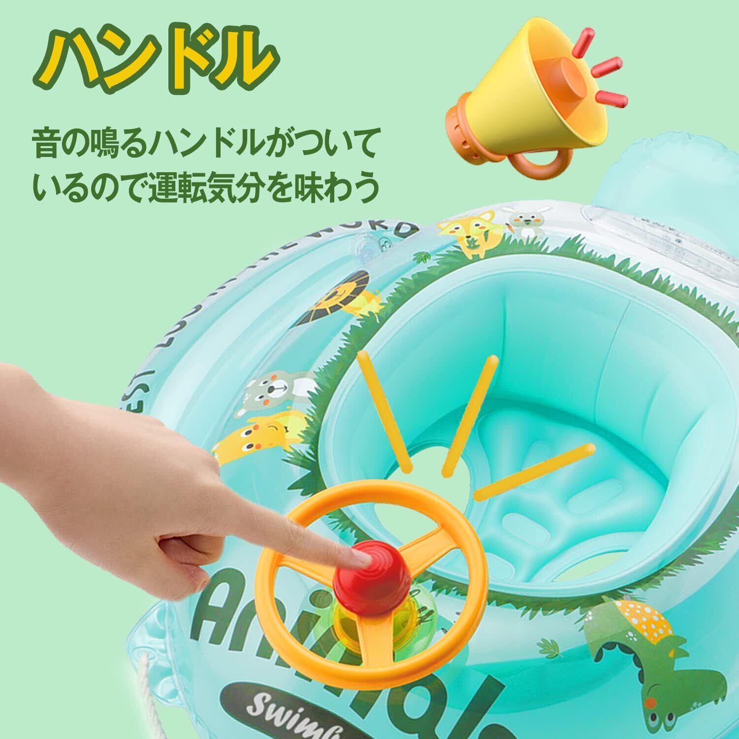 Mercs-X 浮き輪 子ども浮き輪 うきわ 浮輪 足入れタイプ 動物 車の形 ハンドル付き 水泳リング 空気入れ 手押しエアーポンプ グリーン色 透明感 夏の日 水遊び 水泳 海 プール アウトドア 浮き具 フロート 70*65*50CM