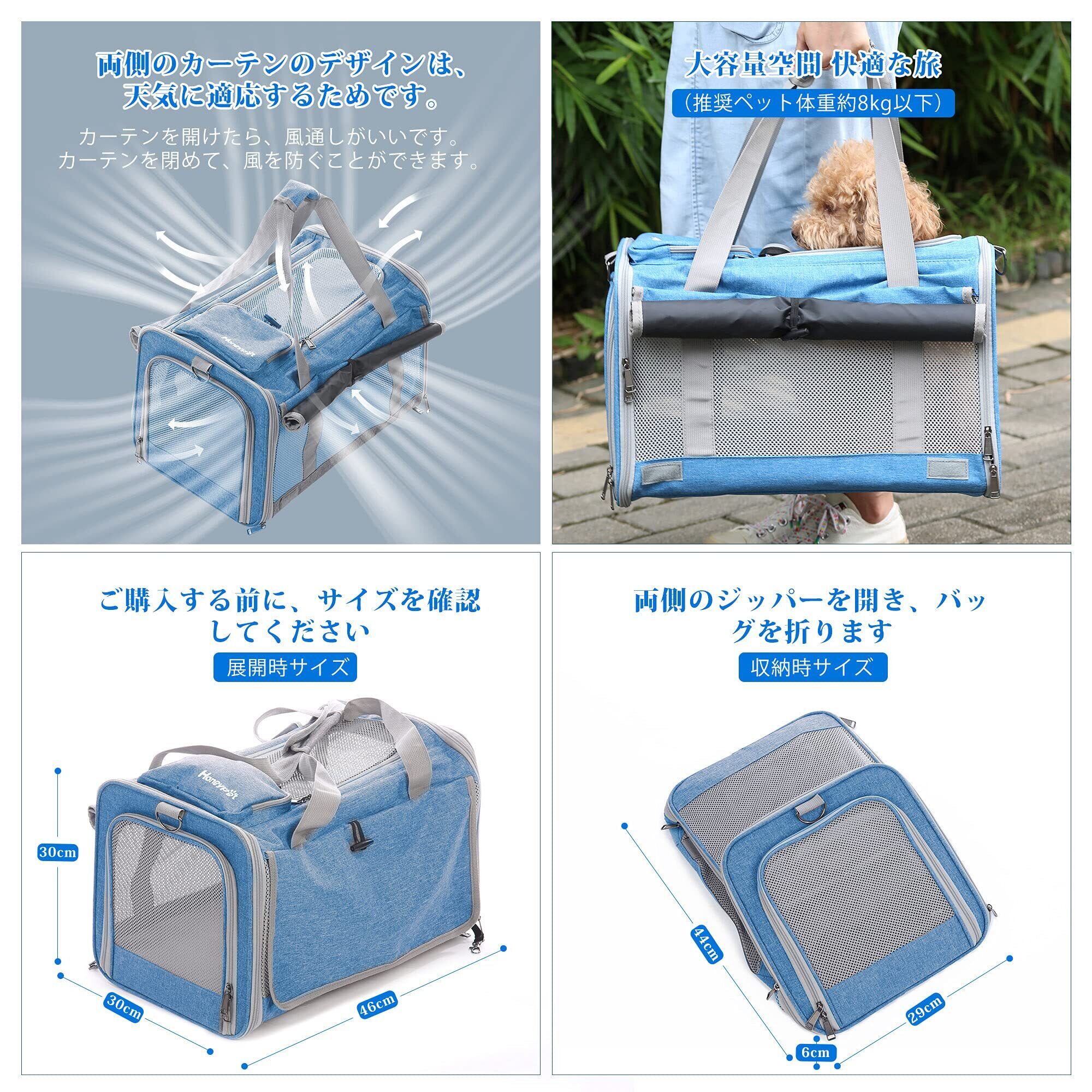 Honeypet 四季通用 ペットキャリーバッグ 折りたたみ 収納4way アウトドア ショルダーバッグ 猫/犬/うさぎ用小屋 8kg耐荷重 通気性、安定性 携帯便利 車載 旅行 キャンピング 通院 散歩 電車移動 災害避難用 外出用 ペットバッグ