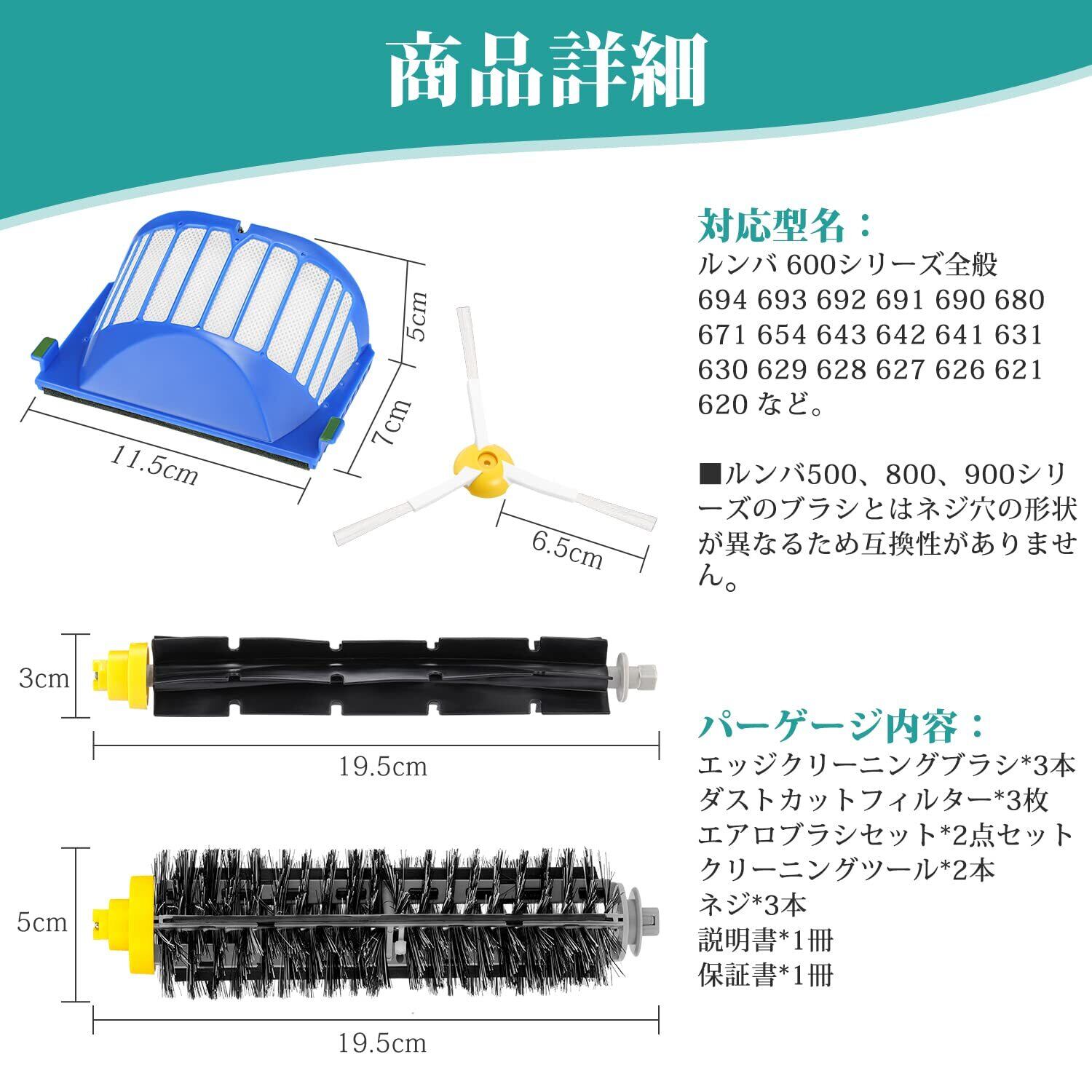 ルンバ600シリーズと互換性のある消耗品セット 692 691 690 680 654 643 642 641 631 629 628 627 626 625 対応互換セット ブラシ フィルター 13点