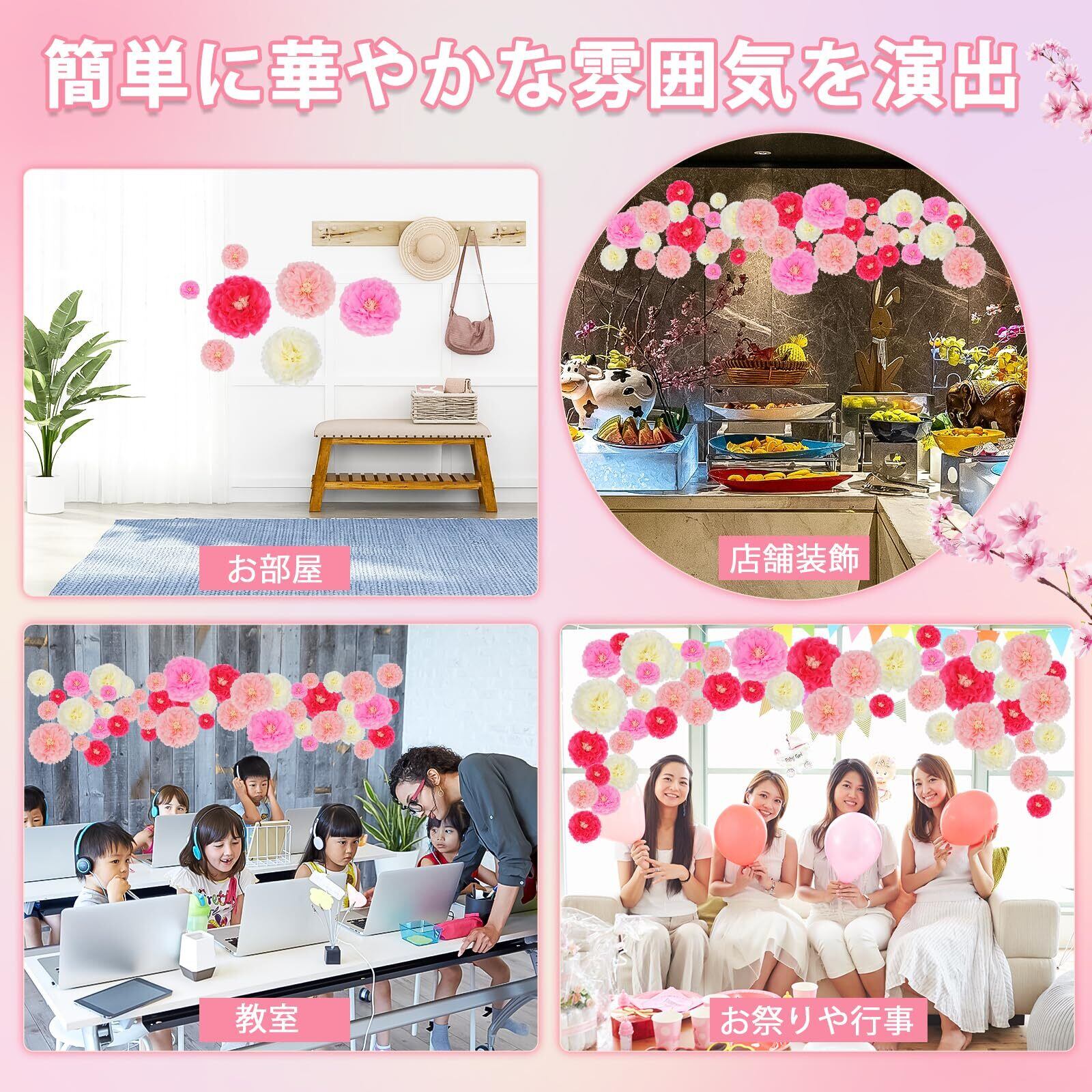 【幅広い用途に大活躍】伝統的な祝祭や現代的なイベントに適用可能。ひな祭り、春の飾り付け、桜の祭りなど、伝統的な祝祭や季節のイベントに適しています。また、お部屋のデコレーション、誕生日パーティー、母の日、送別会、記念撮影、結婚式、店舗の装飾などにも適用され、特別な日に華やかな彩りを加えます。
