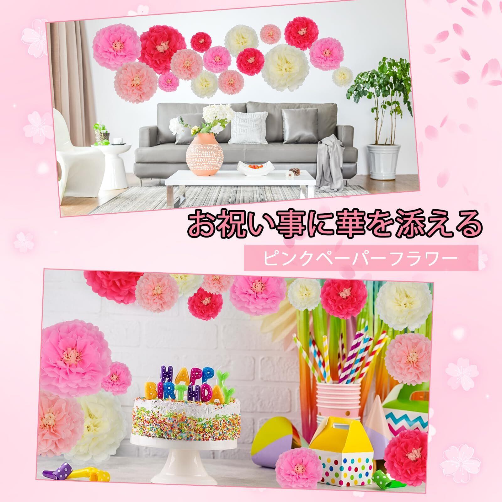 【雰囲気を演出】ピンク色のペーパーフラワーはロマンチックな雰囲気を醸し出し、軽くてふわふわした質感で、お部屋や結婚式、誕生日パーティーに華やかな雰囲気を加えます。天井や窓に吊るしたり、壁に貼り付けたり、テーブルの上でも使えます。操作が簡単で使いやすく、あらゆる家具と違和感なく、雰囲気を盛り上げます。
