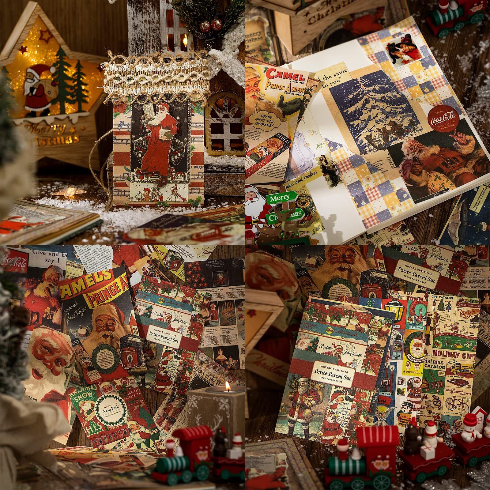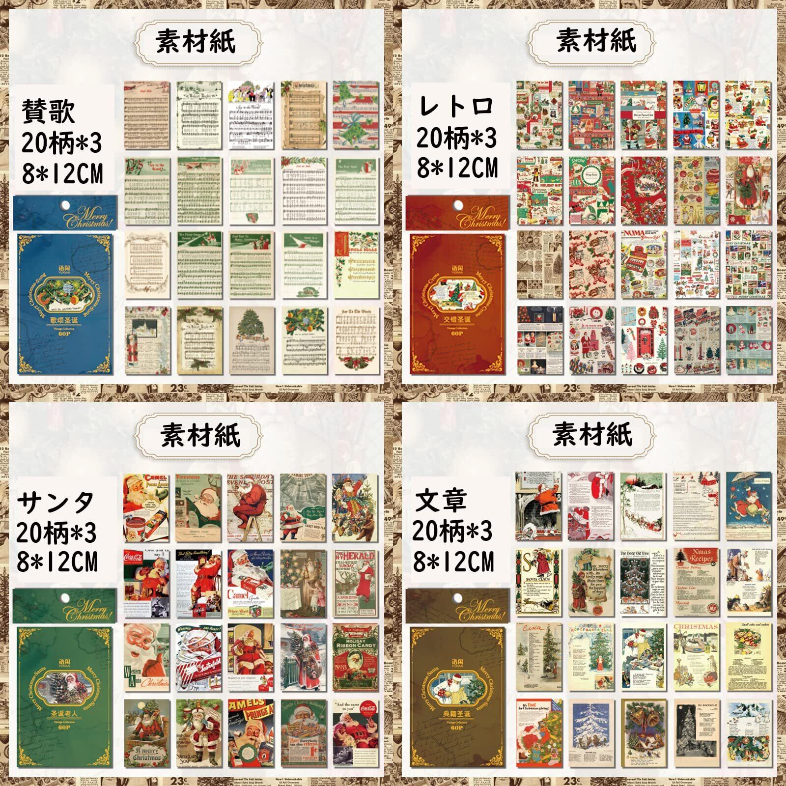 CINECE クリスマス デザインペーパー 背景紙 コラージュ 素材 240枚 シール フレーク 手帳 DIYの飾り レトロ ステッカー 大量 (クリスマス 素材紙)