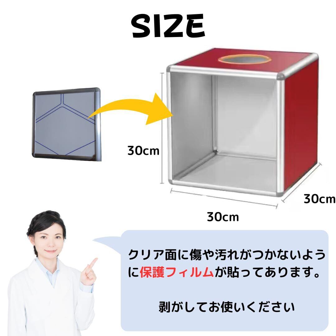 【中が見える 抽選箱 】抽選会やビンゴ大会で大活躍!市販のビンゴマシーンでは抽選中、中が見えずイマイチ盛り上がらないなんてことも。中が見える抽選箱なら、イベントが盛り上げることは間違いありません。正面の1面が透明なアクリル板です。抽選箱に手を入れて中の様子をリアルタイムで見ることができます。 【イベントで大活躍】結婚式の2次会、会社のパーティー、商店街の福引き、子供会など中身が見えることでテンションアップ。【組み立て簡単】差し込むだけ。10分程度で誰でも簡単に組み立てできます。アクリル板には傷や汚れがつかないように保護フィルムが貼ってあります。剥がしてお使いください。*しっかりはめ込むタイプなので組み立て後のバラシはコツと慣れが必要です。 【抽選箱サイズ・材質】30cm × 30cm × 30cm 投入口:直径約10cm 材質:アルミ、プラスチック、(1面透明アクリル)