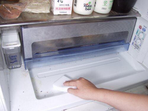 ●スポンジに水を含ませ、掃除したい部分をこするだけ。あとは乾いた布で水気をふき取り簡単きれい