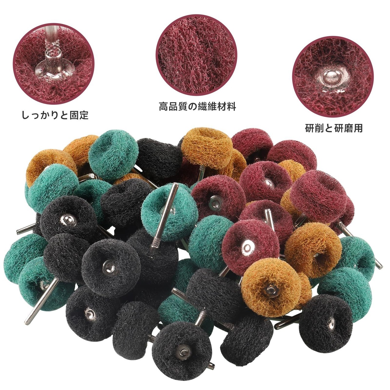 STEBRUAM リューター バフ 50個セット 3mm軸 繊維バフ ルーター バフ ホイール ナイロン 布ブラシ 研磨 電動 ドリル ルーター ビット バフ 鏡面研磨や金属磨き仕上げ #80/#150/#240/#400/#600各10個