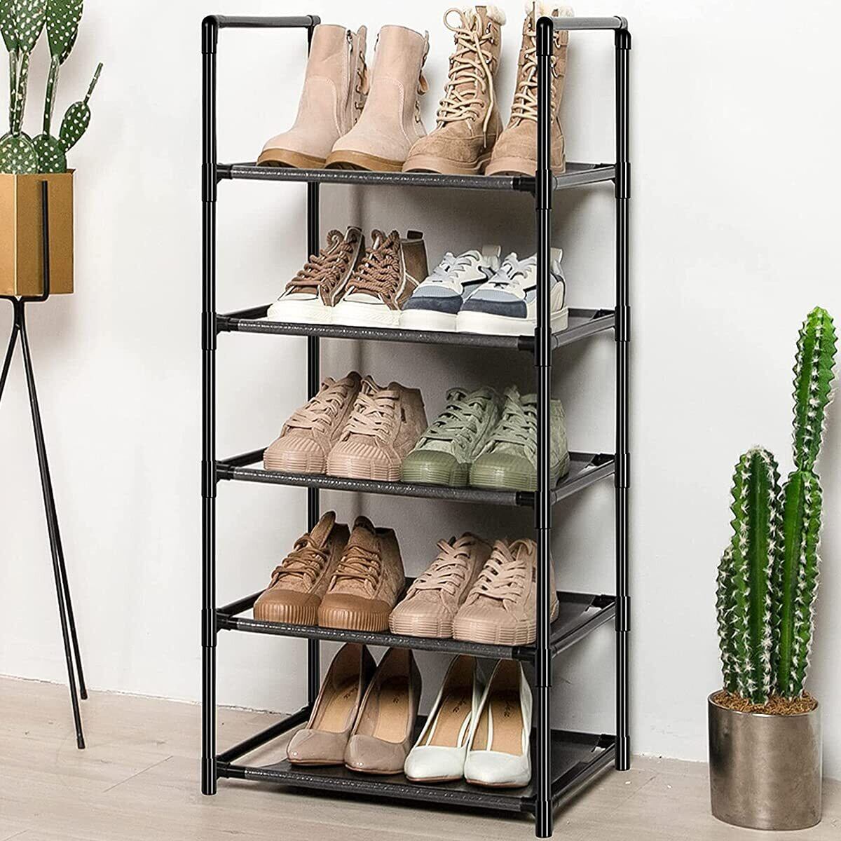 【省スペース 大容量のシューズラック ブラック】サイズ:幅約45×奥行30×高さ90cm,靴ラックは、全5段で、靴を10足収納できます。収納スペースが狭く、靴が多い方に、この靴ラックは非常に好適です。フットプリントが小さいため、靴ラックはスペース効率が非常に高く、すべてのコーナーに適しています。