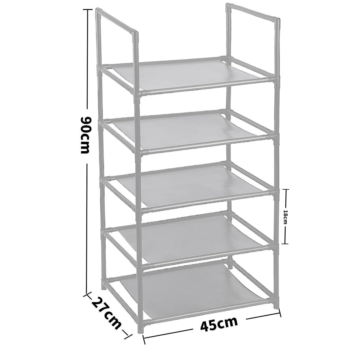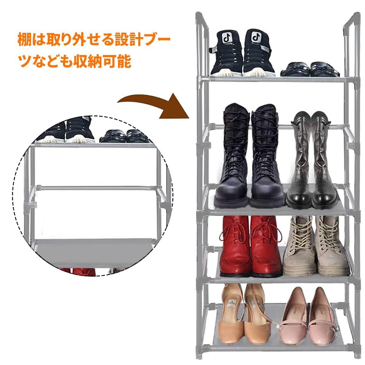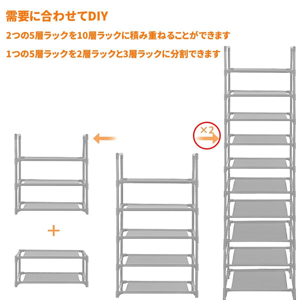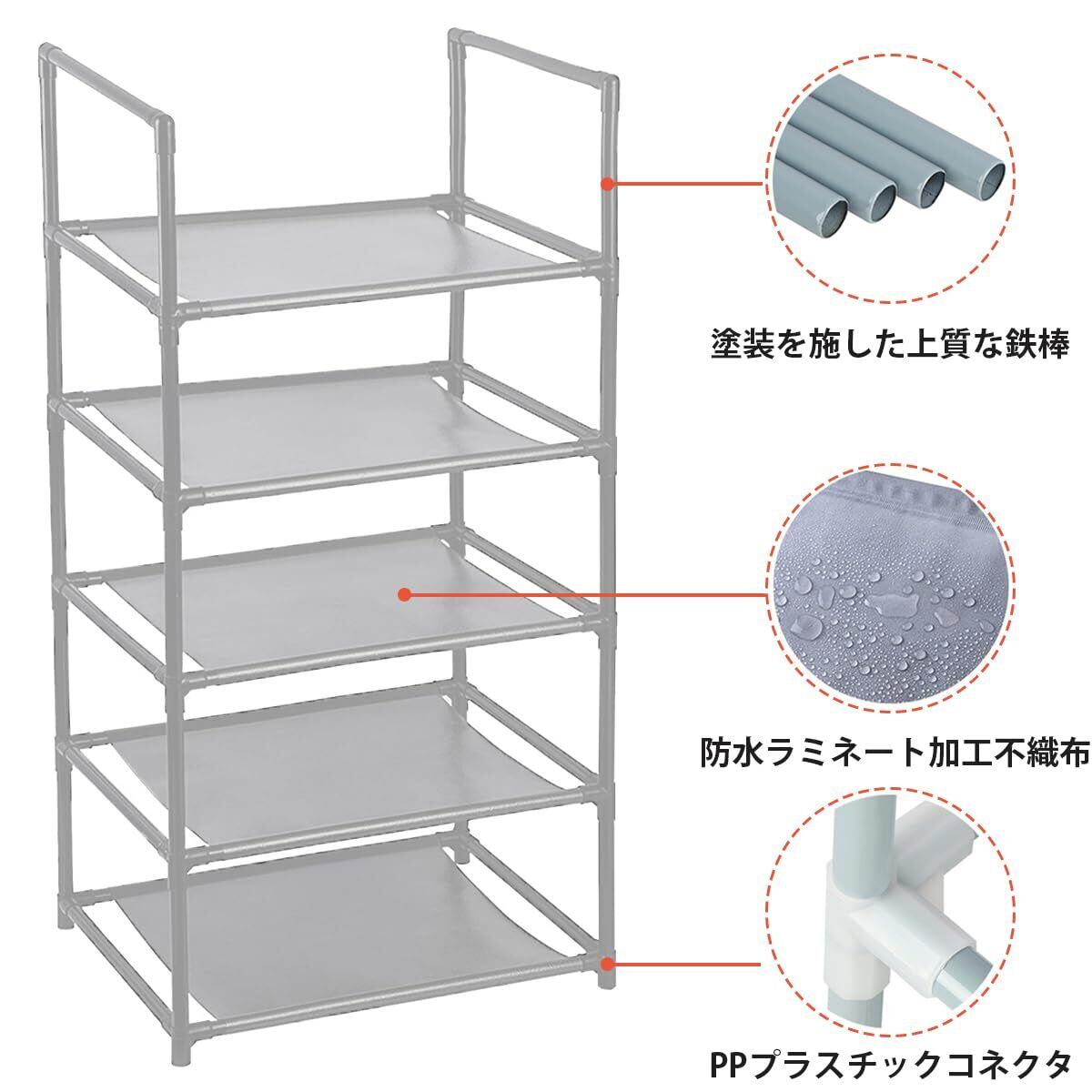 シューズラック 5段 靴収納 8-10足 靴棚 下駄箱 省スペース シューズボックス スリム 玄関に靴を効率収納 靴入れ 組み立て式 日本語説明書付き 幅約45×奥行28×高さ90cm(グレー 5段)