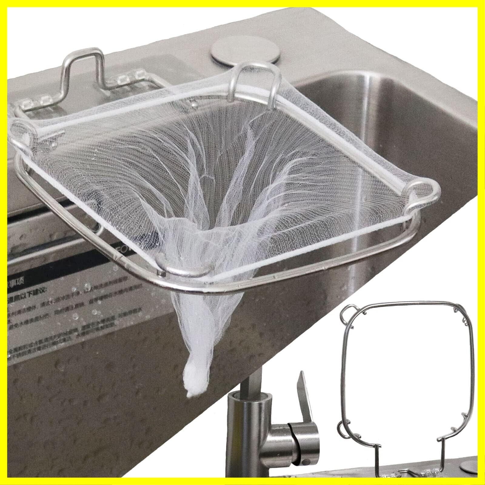 ママ倉 三角コーナー不要 シンク 水切り ゴミ袋用 ステンレス鋼 折りたたみ 立てる水切り袋 いらず 水切りネットホルダー 使い捨て 水切り袋ホルダー キッチン 水切りラック 台所 生ゴミ受け入れ スタンド さんかくこーなー 浮かせる 手持分解洗う 5年間用 大きな開口 15.8*19CM