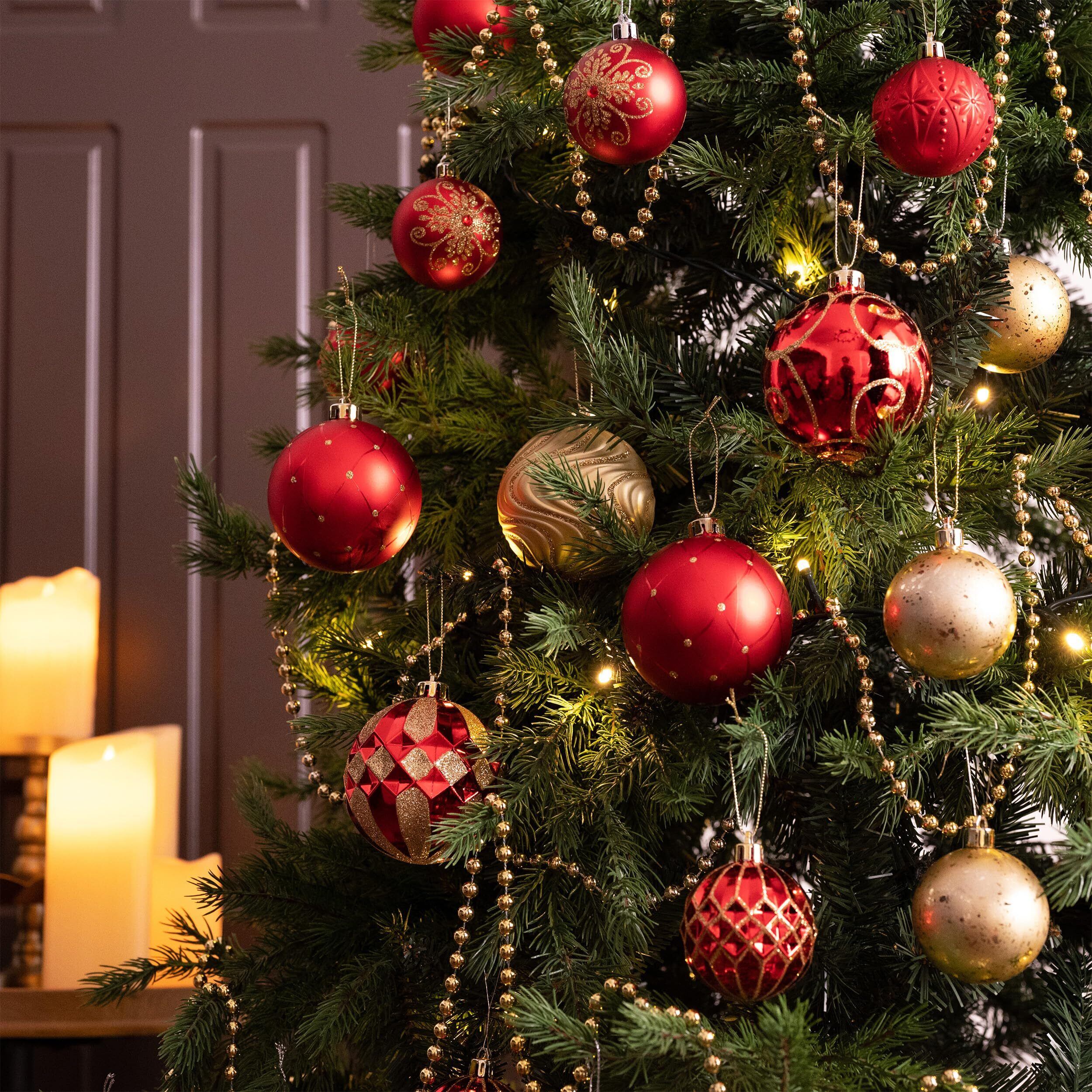 【豊富な選択】このボールセットは赤いクリスマスのデラックスのテーマで、さまざまな柄があり、セットの中の各色の製品はあなたの家庭装飾に豊富な選択を提供します。