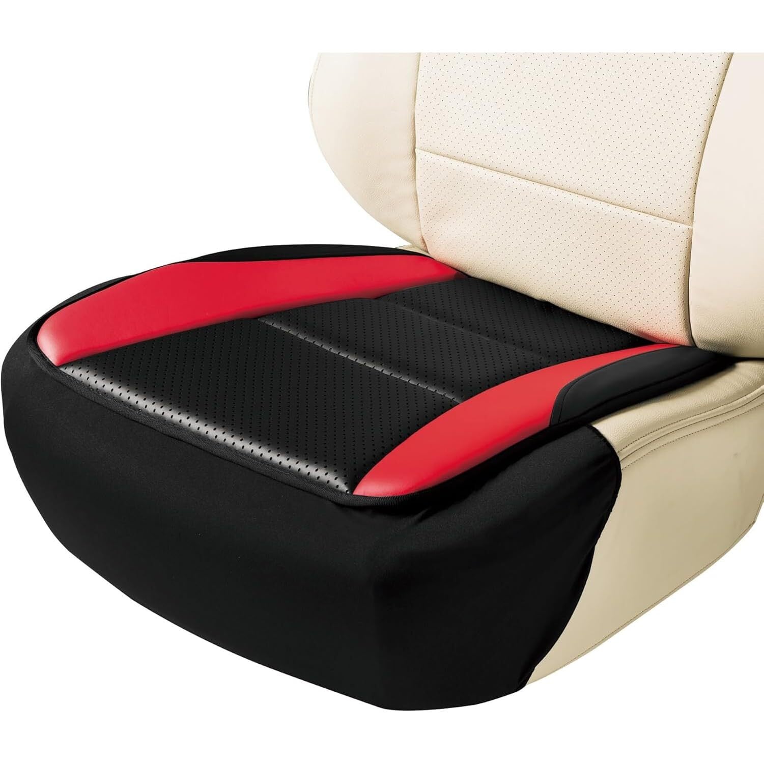 ボンフォーム(BONFORM) シートクッション レザーアロー 軽/普通車 ヒップ型 スカート型ストッパー付き パンチングレザー ヒップガタ45x45x2cm ブラック/レッド 5678-43R
