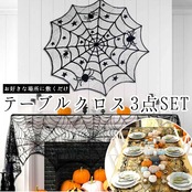 【 本格3点セット 】ホラーディスプレイにマッチするお洒落な蜘蛛の巣デザイン。これだけで素敵なパーティーセッティングの完成です。