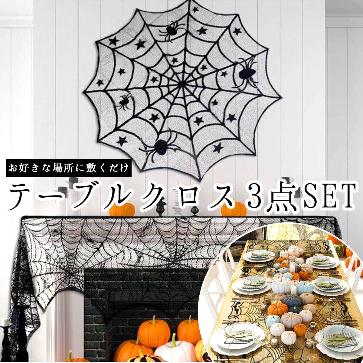 monoii 3点セット ハロウィン 飾り テーブルクロス レース 蜘蛛 ハロウィンパーティー 装飾 おしゃれ インテリア デコレーション 部屋 テーブル d877