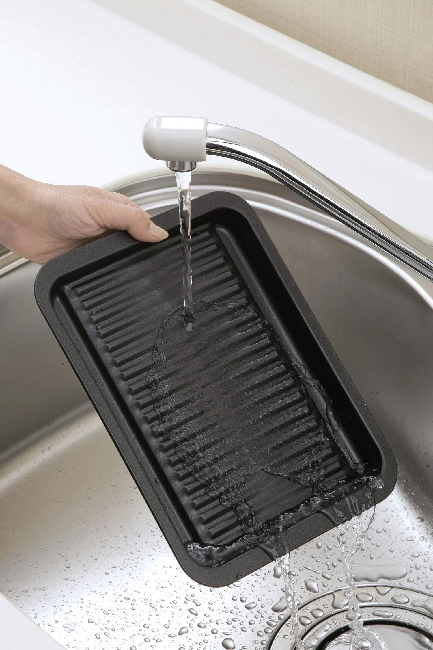 表面はこびりつきにくいフッ素加工、お手入れもラクラク