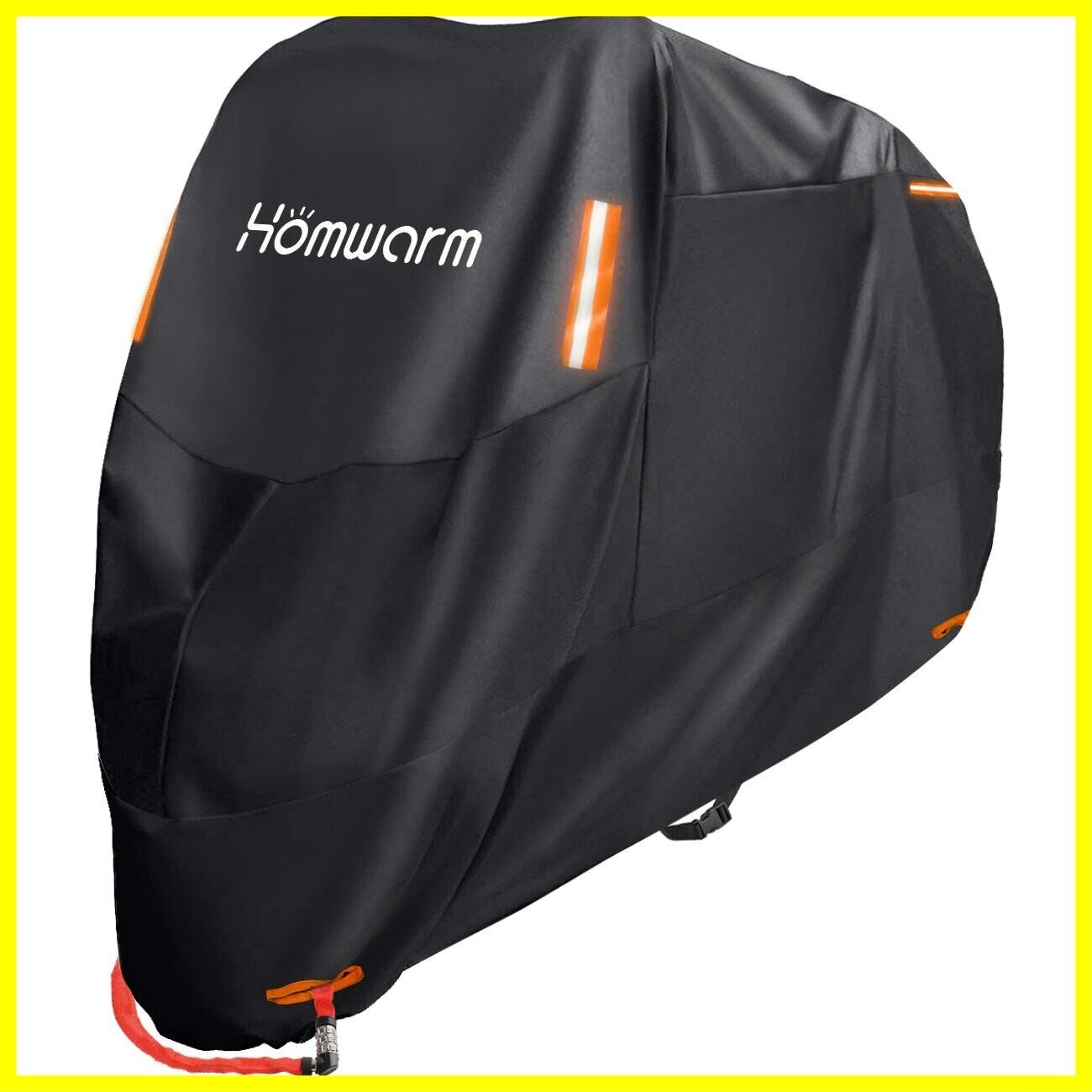 Homwarm バイクカバー 300D厚手 防水 紫外線防止 収納バッグ付き (XXXL, ブラック)