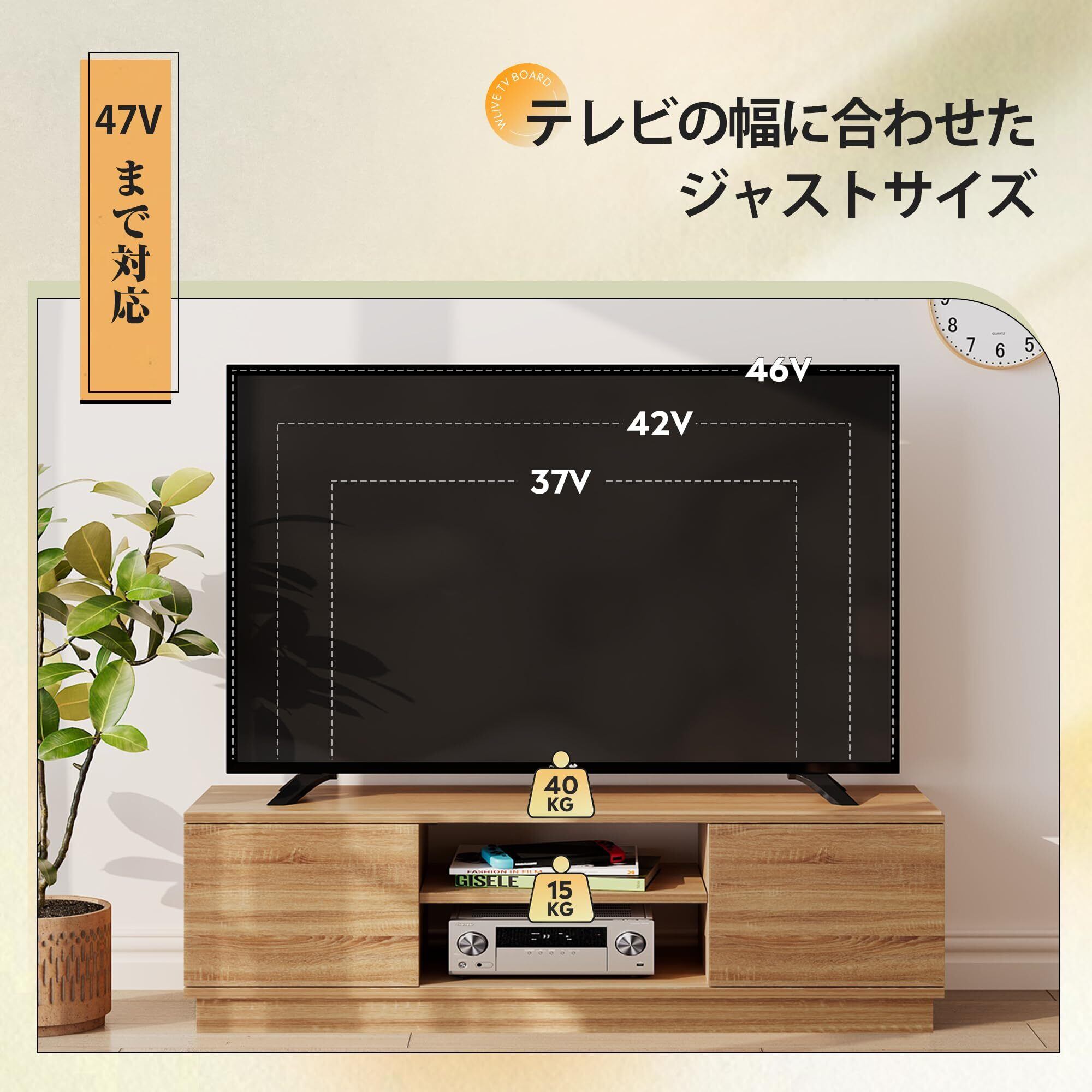「頑丈な作り」E1のメラミン加工板を使用しているため、耐久性と安全性に優れています。天板の耐荷重は最大40kgまで対応しており、テレビ以外にも PS5ゲーム機や植物などの小物を置くことができます。自分だけのリビングスタイルを演出できます。