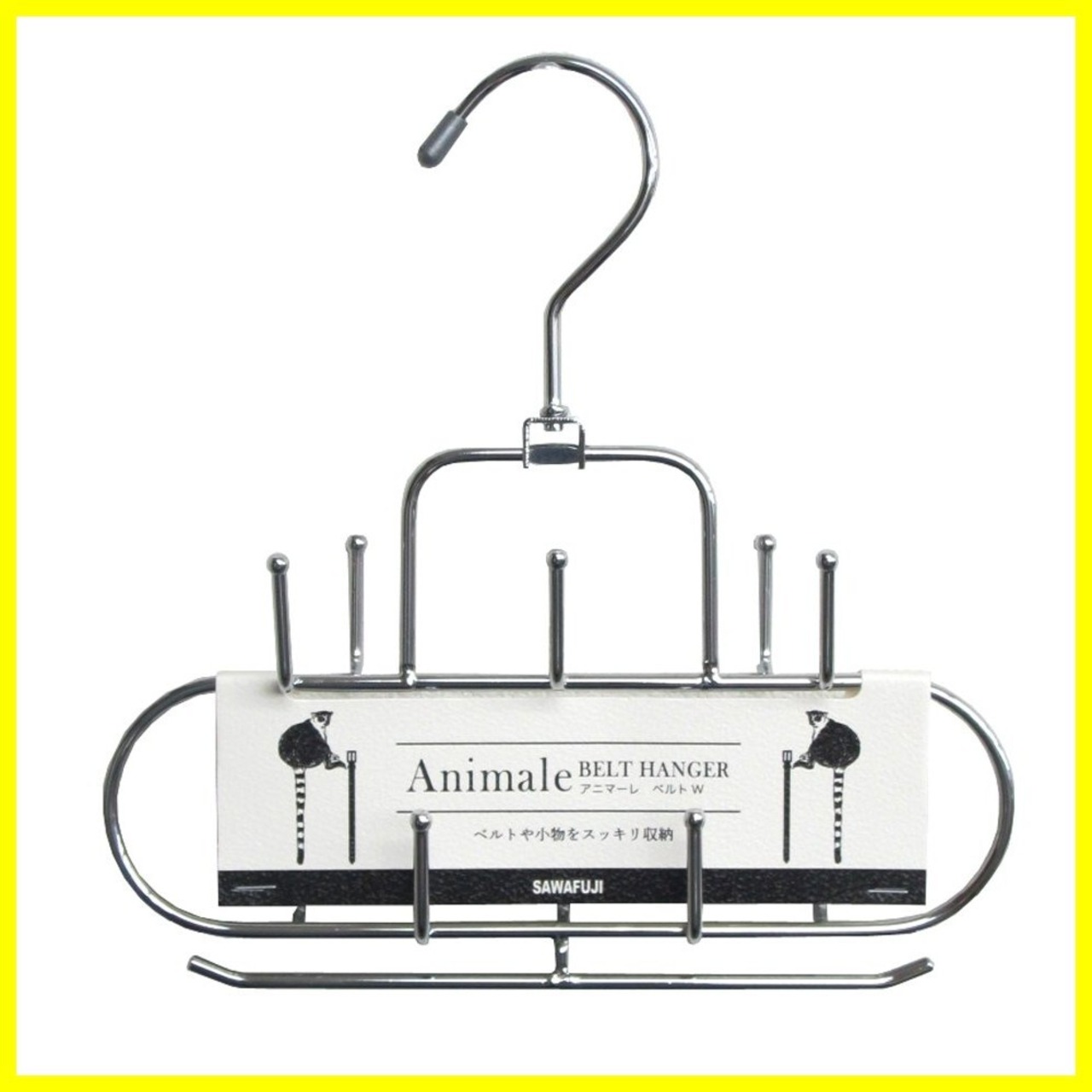 サワフジ ベルトハンガー アニマーレベルトW 幅210mm メンズ 回転 両面 サクセサリー 小物 省スペース収納 バックル対応 帽子 スカーフ クローゼット フック おしゃれ シンプル AN-19