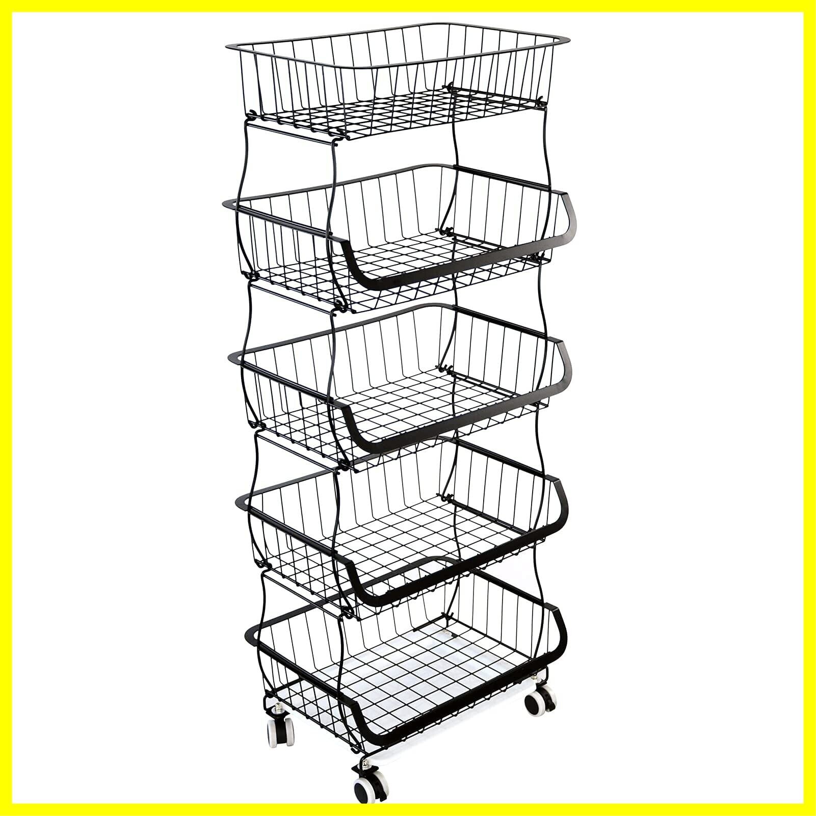【自宅に最適な収納ソリューション】この積み重ね可能な5段収納バスケットとローリングユーティリティカートは、収納力が大きく、自宅/オフィスの整理整頓に役立ちます。