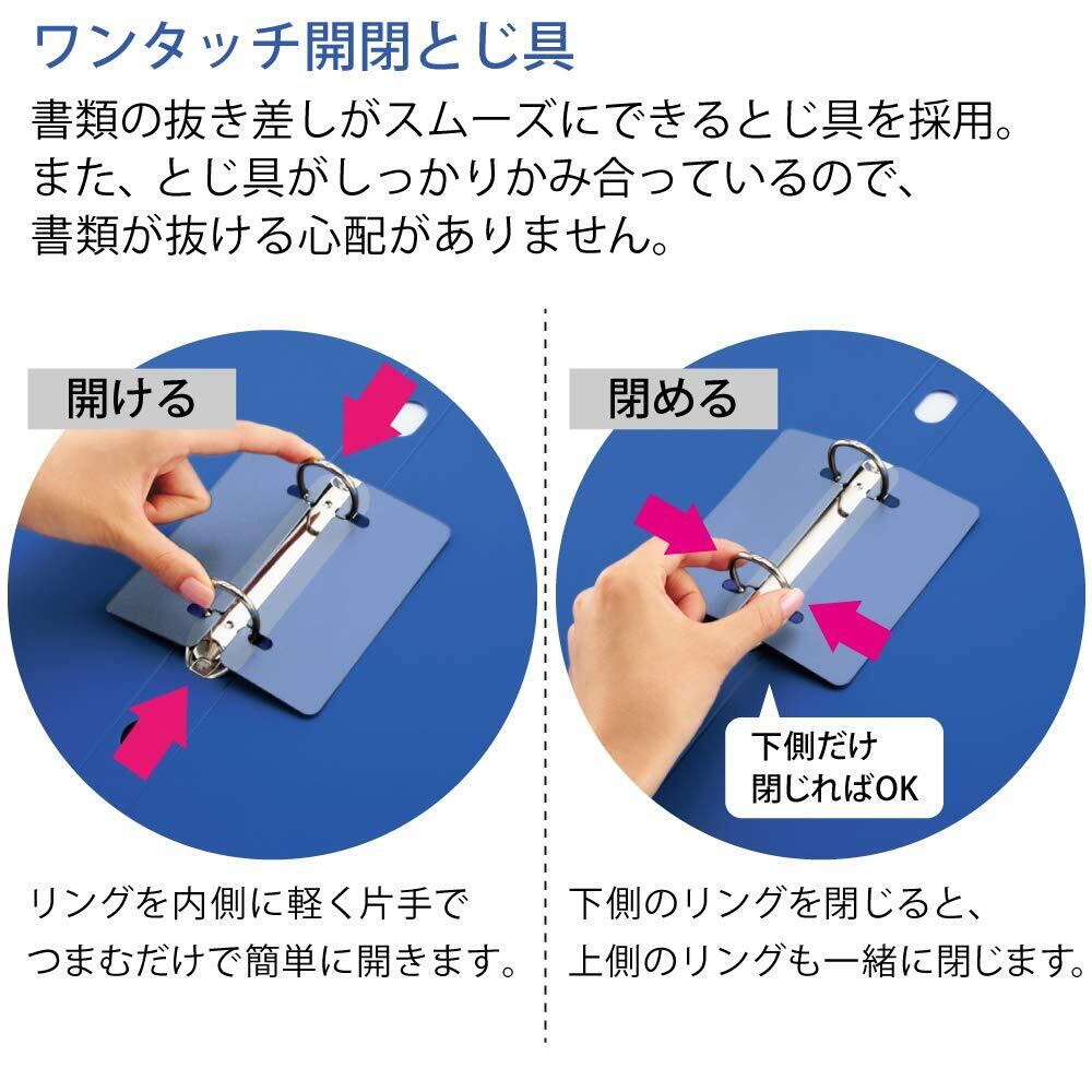 ・書類の抜き差しがスムーズにできるとじ具を採用しており、とじ具をワンタッチで開閉できます。
