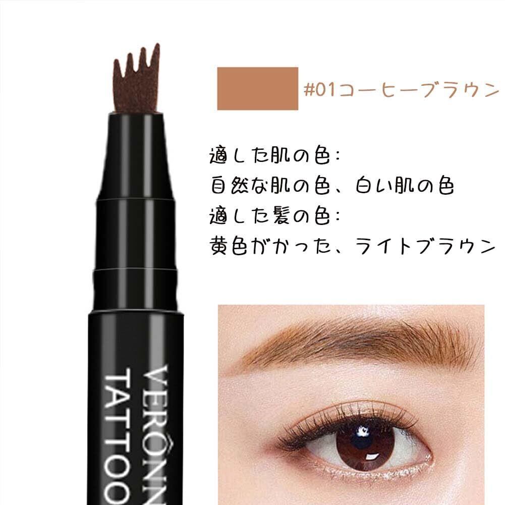新感覚ナチュラル眉 4本爪アイブロウペン 細仕様 滑らかなブラシヘッド 色落ちせず鮮明で鮮やかなフォーク型ブラシ リキッドブロウ 持ち運びや拭き取りが簡単、4本ヘッド、4チップ精密アイブロウペンシル、4チップ眉毛、防水性と耐汗性 - 長持ちする眉毛ペン、初心者の必需品、プロのメイクアップアーティストに最適(#01コーヒーブラウン)