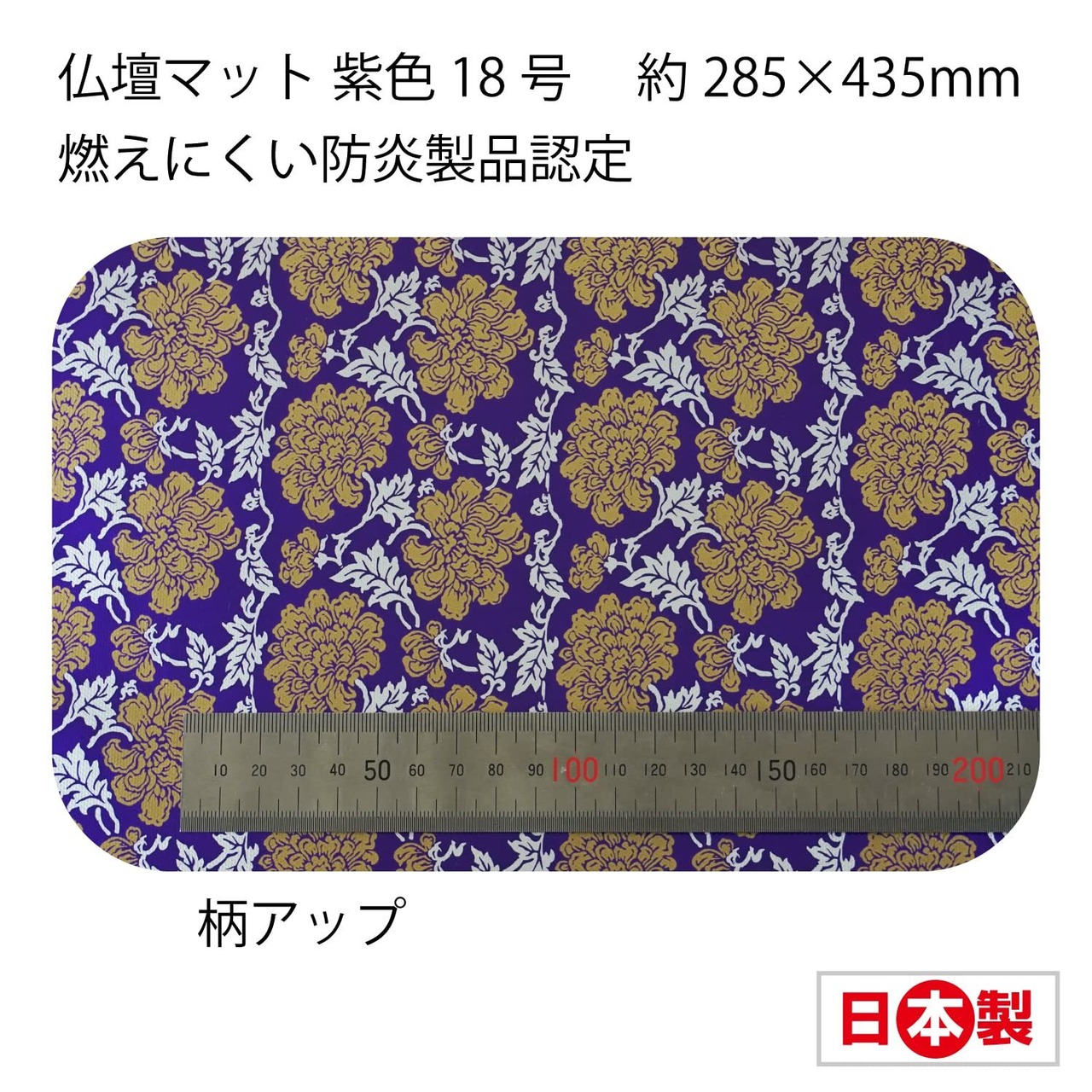 ファイン 仏壇マット 紫色 18号 約285×435mm 燃えにくい 汚れもサッとひと拭き 防炎製品認定 日本製 91502