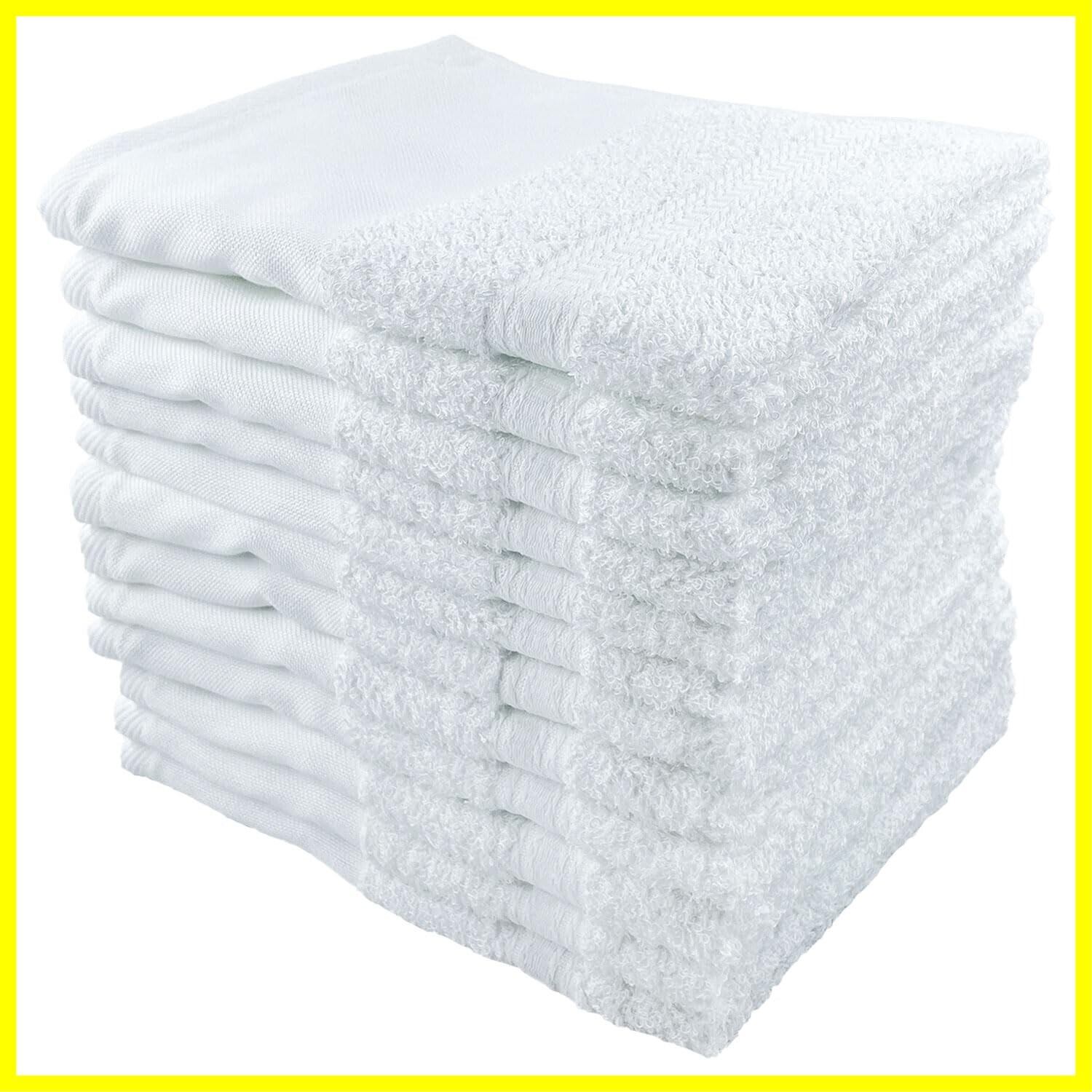 まとめ買いに便利な12枚パック。洗顔や入浴用にも掃除用にも使える万能なコットン100%の普通の白タオルです。