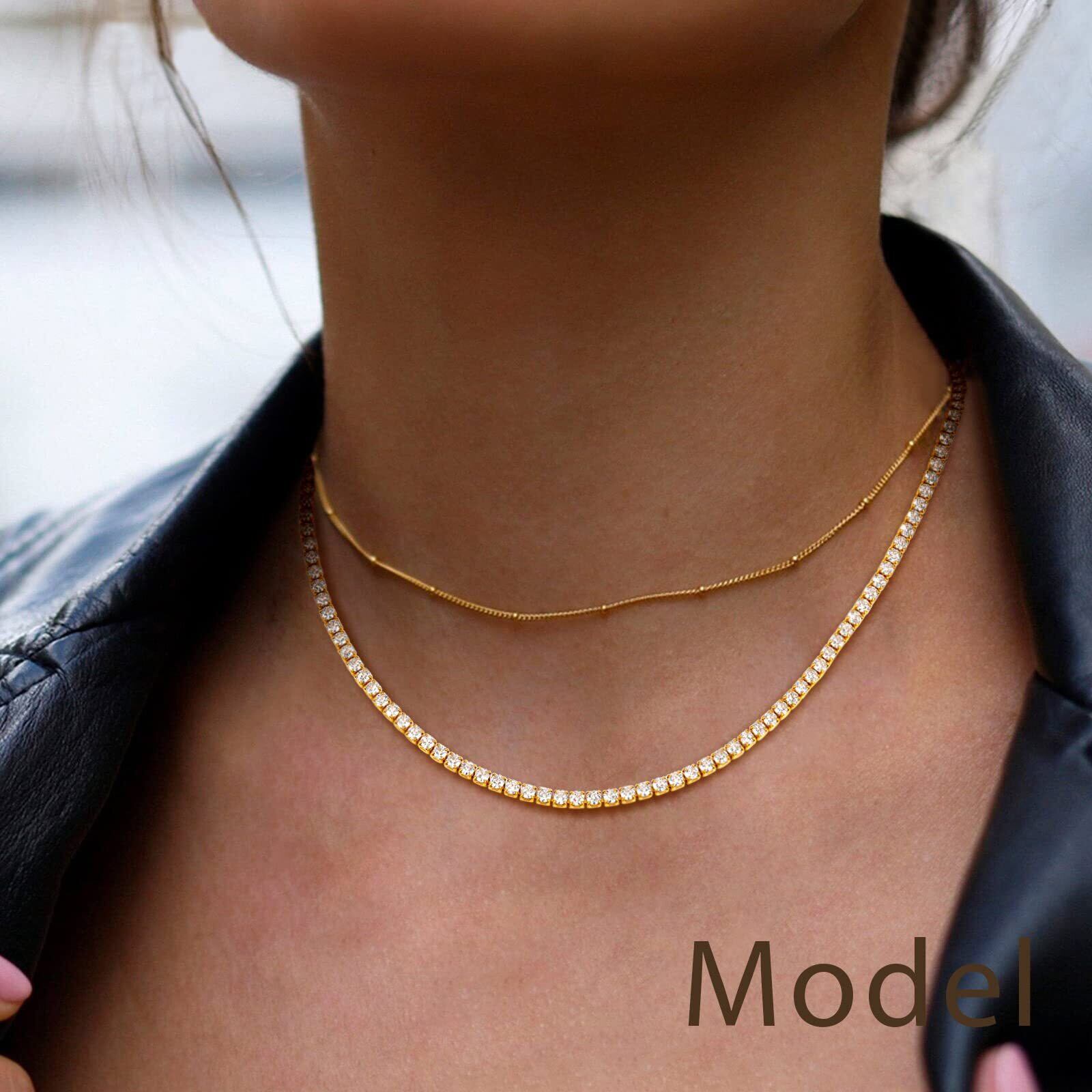 FindChic テニスネックレス レディース キュービックジルコニア ゴールド 真鍮 パーティー アクセサリー プレゼント 女性 65cm